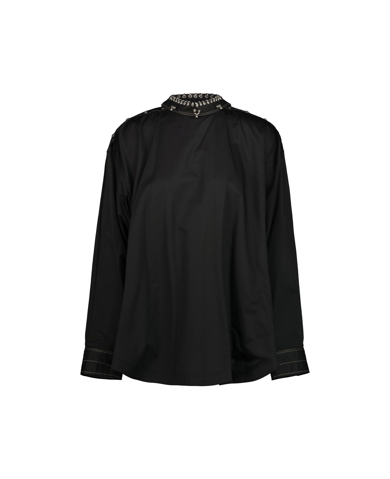Lemaire cotton shirt with metal details of rings and studs along the edge of the collar and cuffs, opening on the shoulders with snaps. GTIN code: T01327 LF1207
