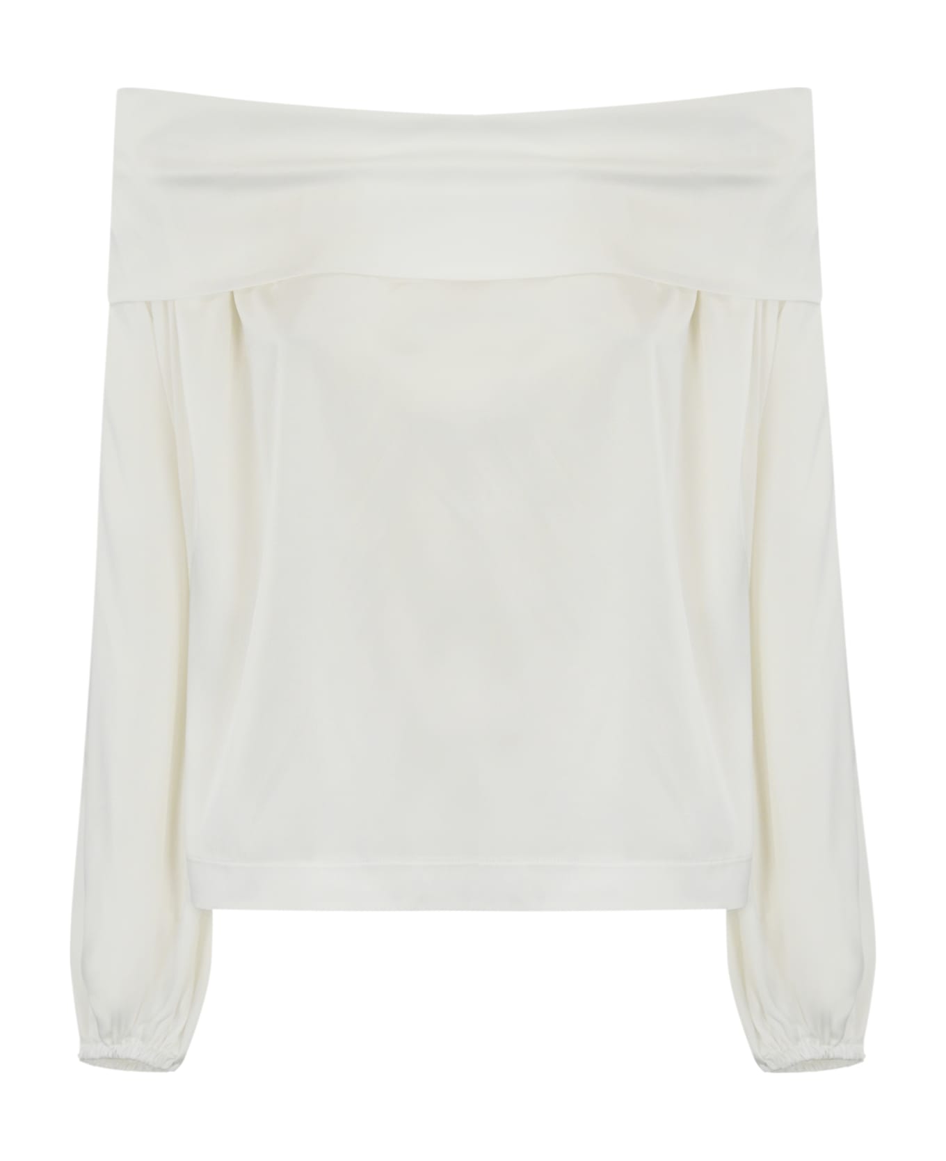 women's satin blouse: fluid satin long sleeves elastic cuffs off-shoulder design straight neckline straight hem regular fit composition: 97% polyester, 3% elastane