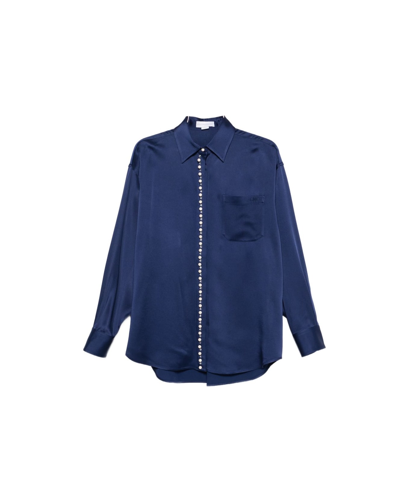 blue pearl embellishment chest pocket button fastening long sleeves buttoned cuffs Composition: 50% Plastic, 30% Glass, 20% Brass