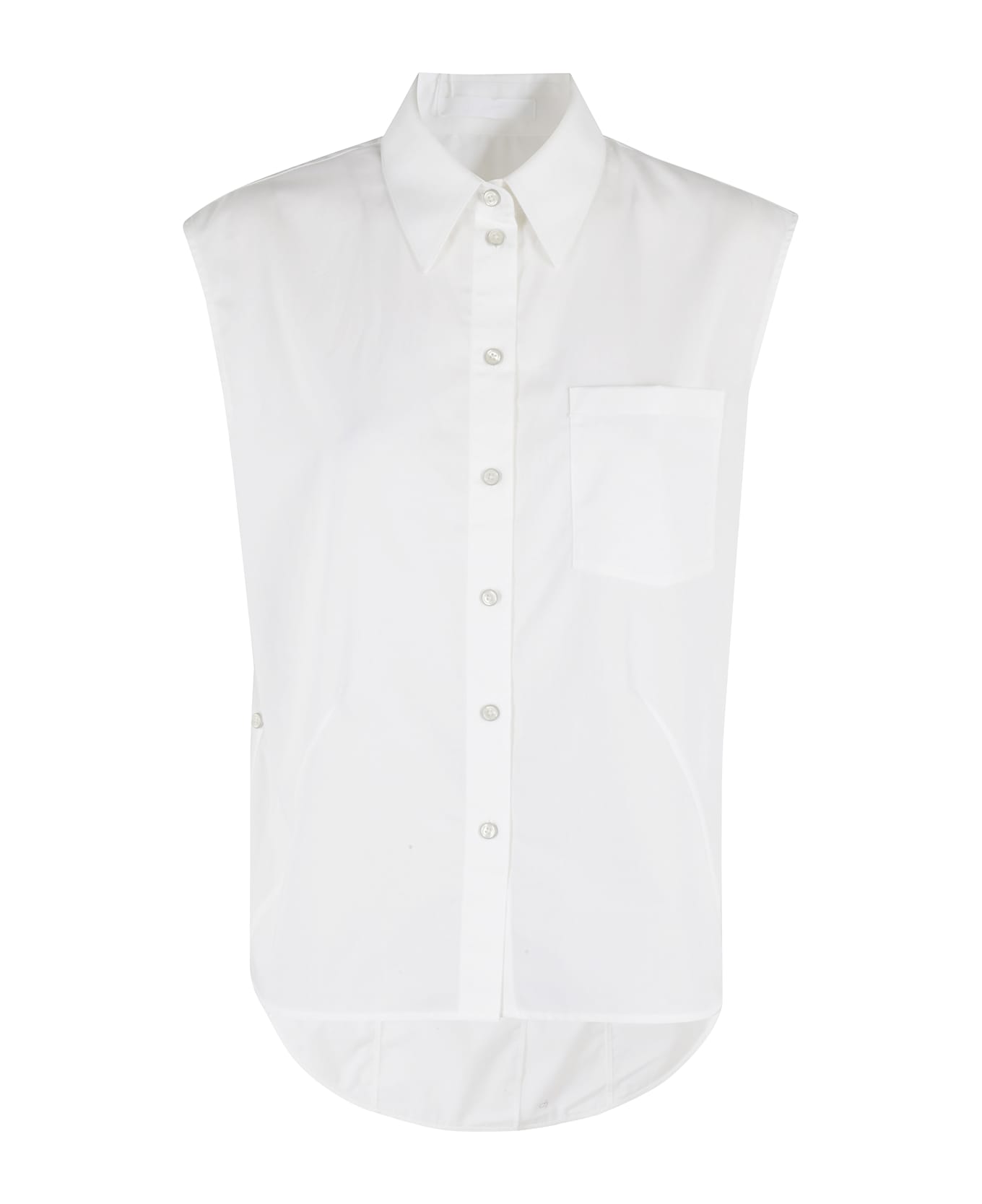 Apex Tail shirt - Helmut Lang - White color - Cotton poplin fabric - Classic collar - Sleeveless - Patch pocket on chest - Front button closure - Longer hem at back - Loose fit.