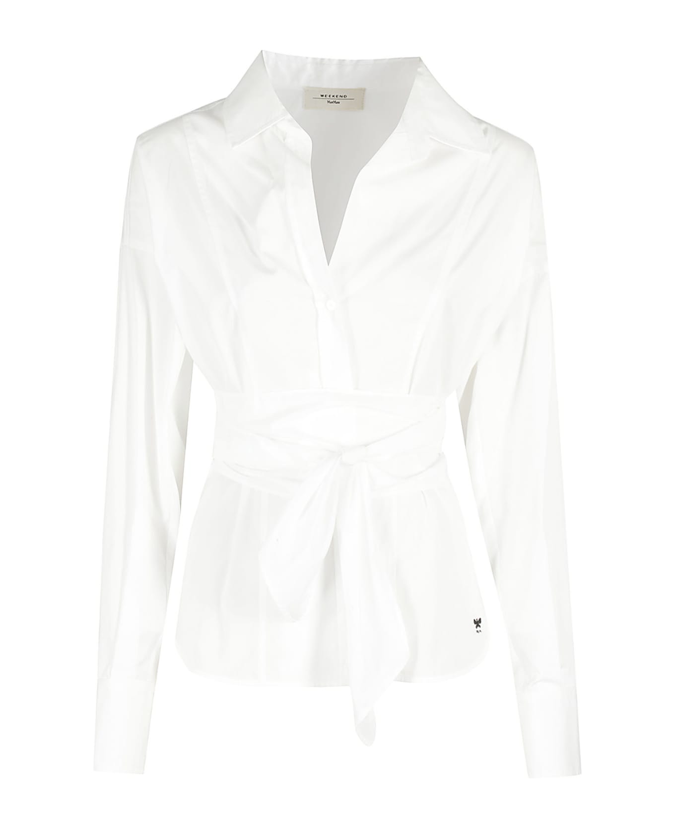 Torino Shirt - Weekend Max Mara - White color - Collar - Long batwing sleeve with buttons - Button closure - Rounded hem with small embroidered logo - Waist sash - Slim fit.
