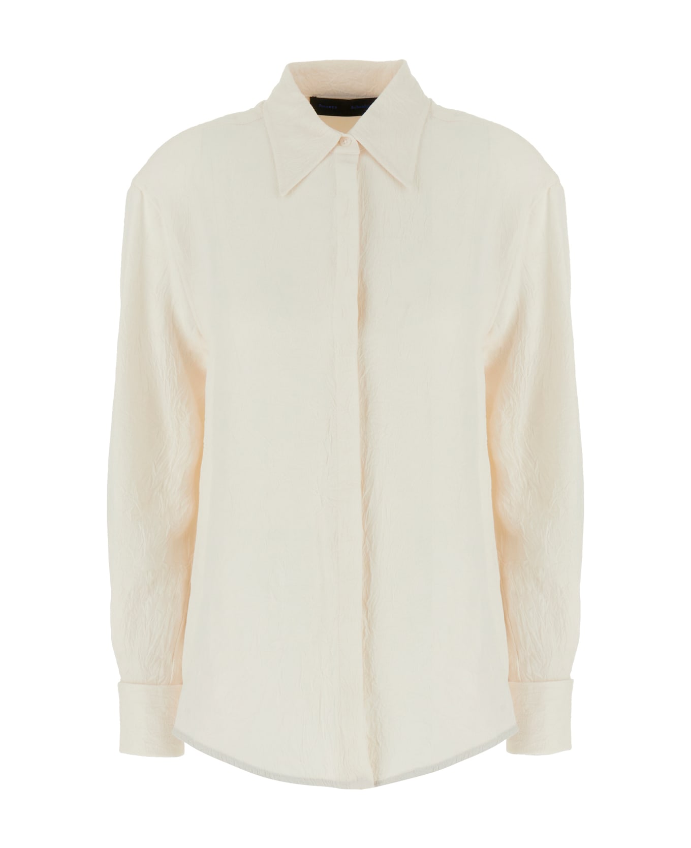 Shirt realized in acetate satin characterized by italian collar. -Concealed buttons and a single visible button closure at the front -Buttoned angle cuffs -Lateral slits on the hemline -Rounded hemline -Rear placket and rear yoke