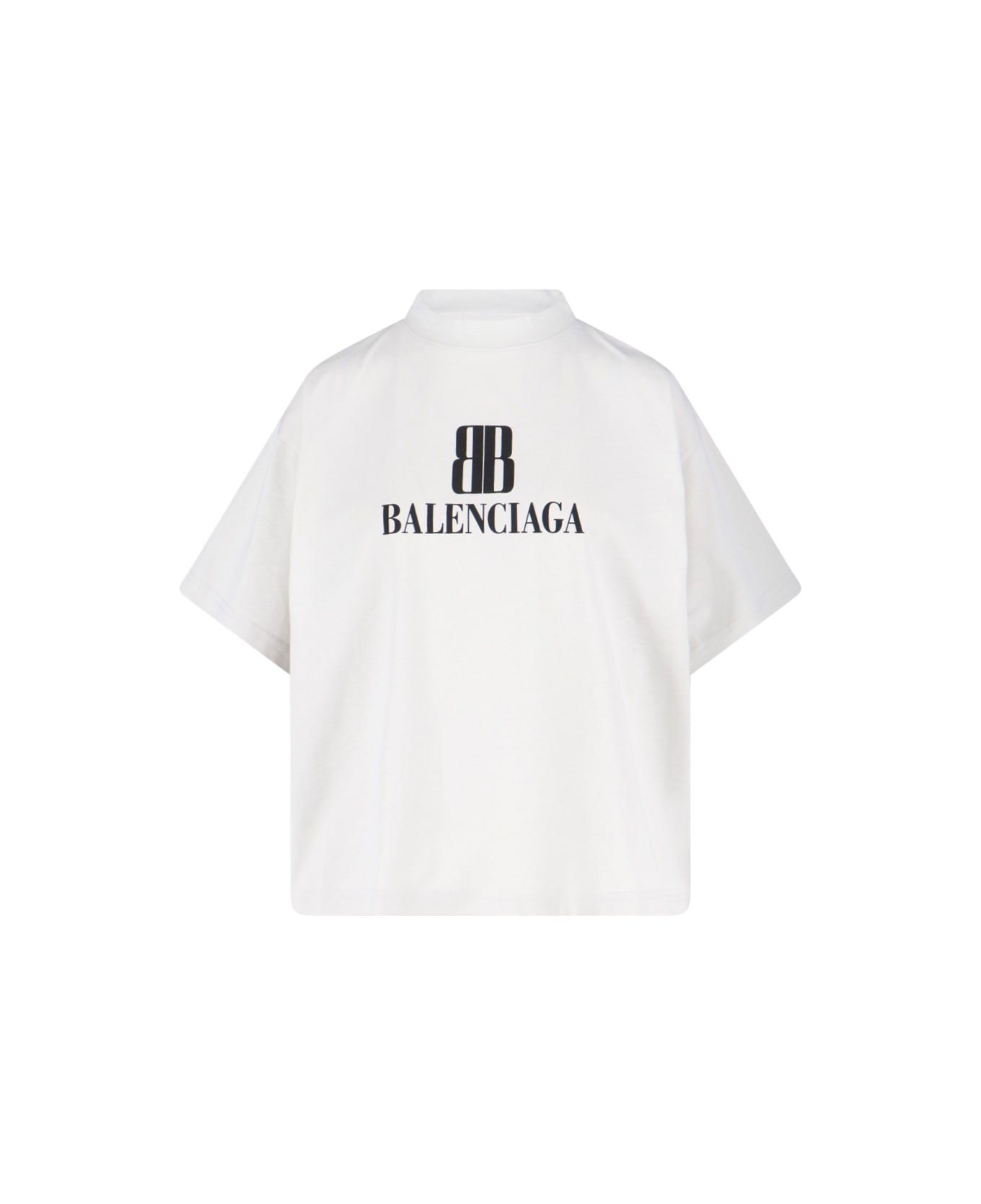 Balenciaga logo T-shirt in white cotton jersey with high neck, short sleeves, BB logo print on the front, straight hem. Composition: 100% Cotton