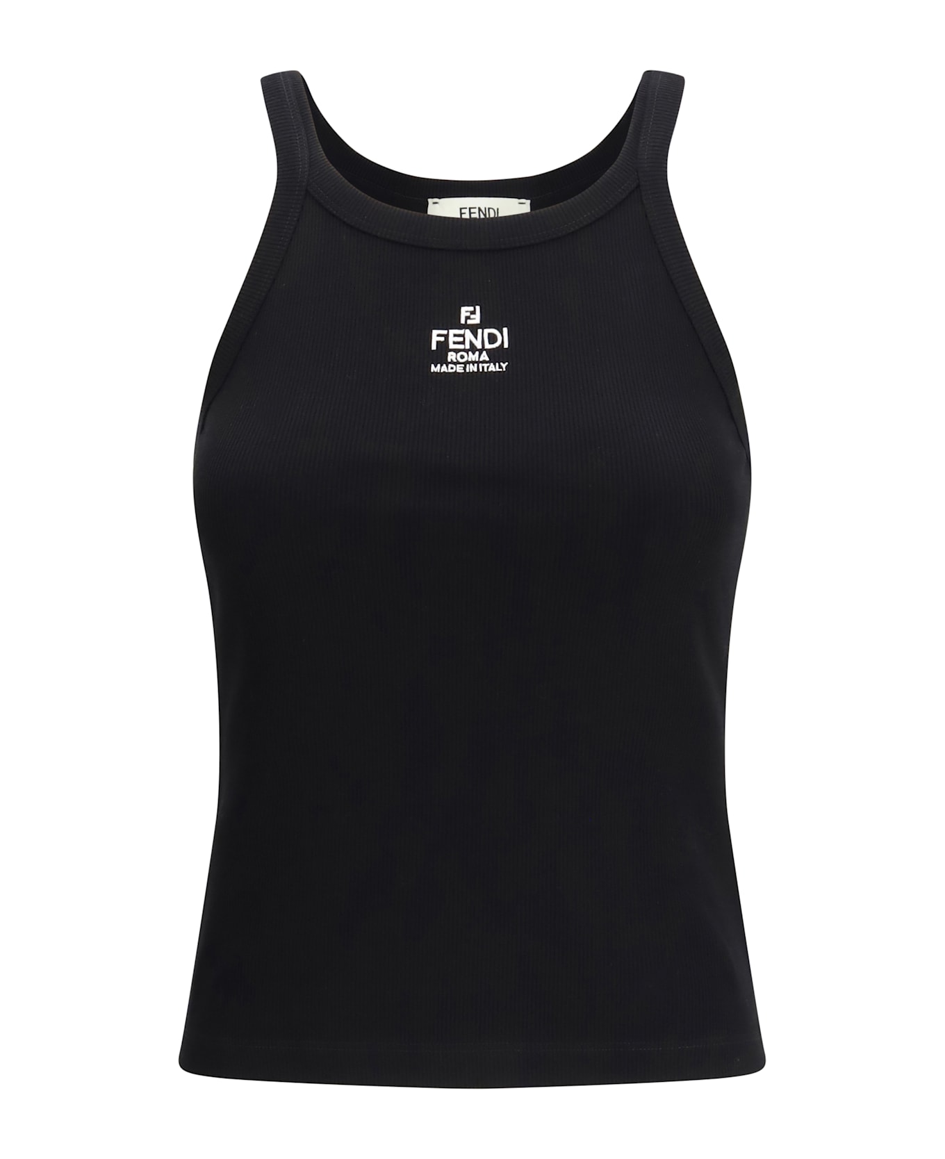 Cotton top by fendi, ribbed shoulder straps, iconic brand monogram embroidered in contrasting colour on the front, monochrome pattern. Composition: 100% % Cotton