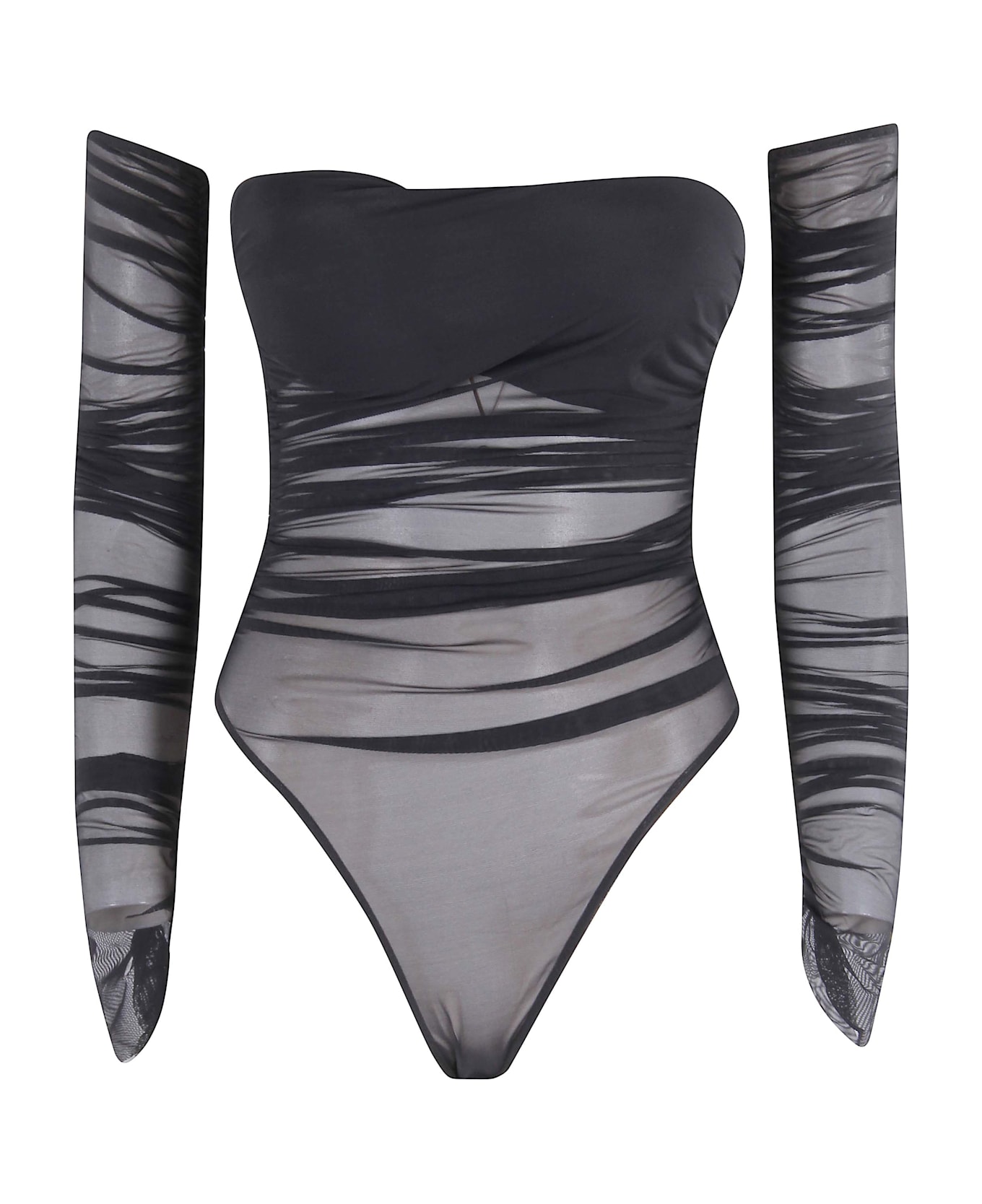 Oriane bodysuit - Amazuin - Black color - Tulle fabric - Sweetheart neckline with cups - Removable long sleeve - Fitted fit
