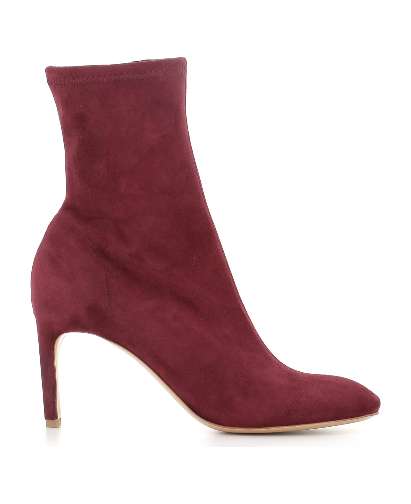 Bordeaux stretch women's suede ankle boot by Del Carlo, featuring by a round toe and zip fastening side. Lined interior. Leather sole. Heel: 7,5 cm
