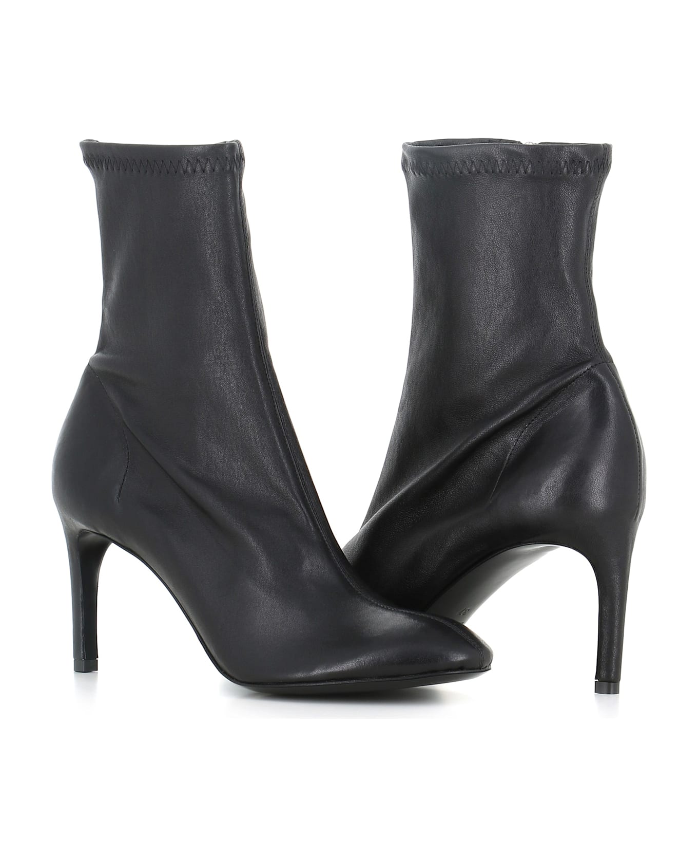 Black stretch women's leather ankle boot by Del Carlo, featuring by a round toe and zip fastening side. Lined interior. Leather sole. Heel: 7,5 cm