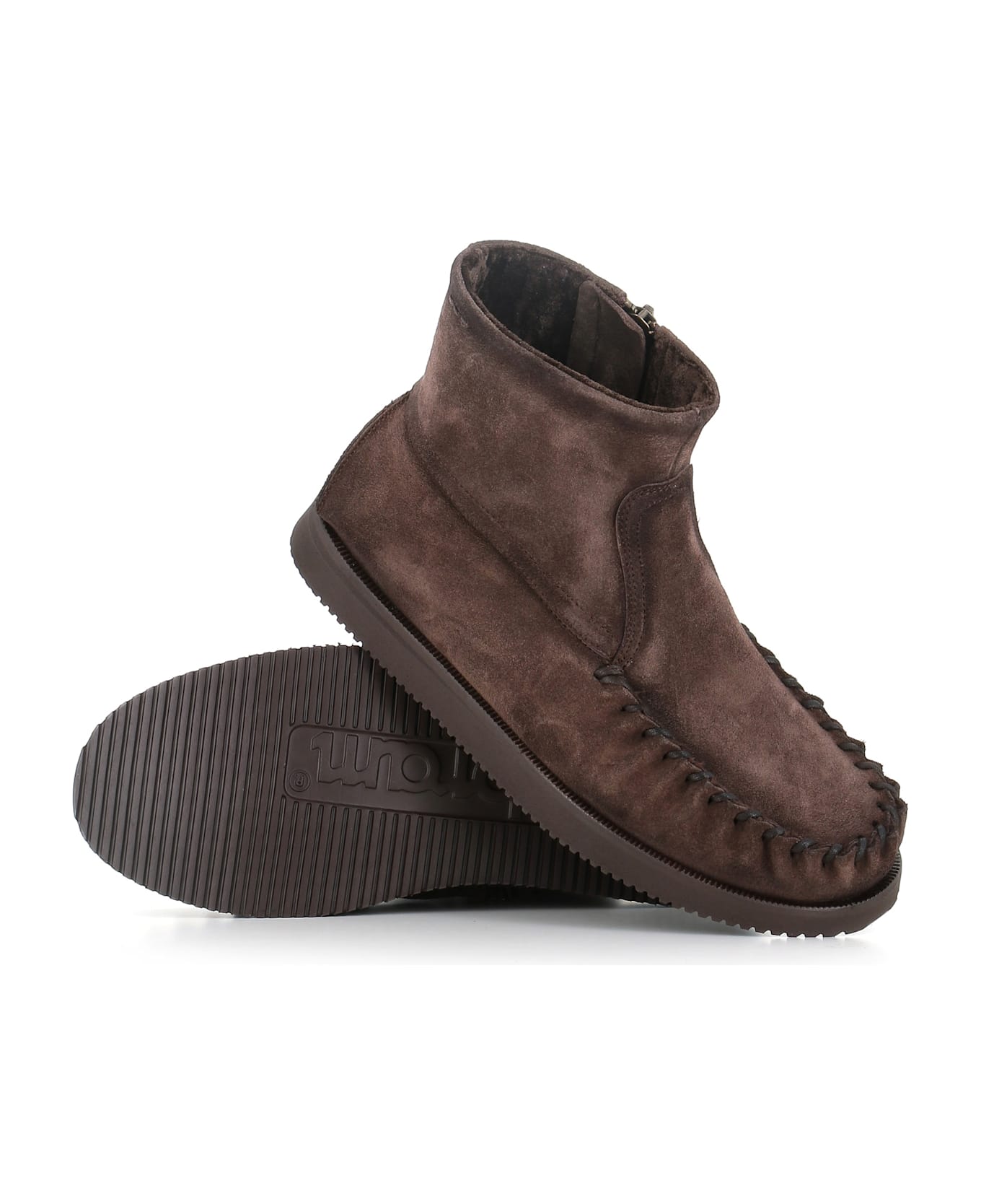 Dark brown suede women's ankle boot by Alexander Hotto, featuring by visible stitching. Fabric synthetic lined interior. Vibram® rubber sole. Heel: 2,5 cm