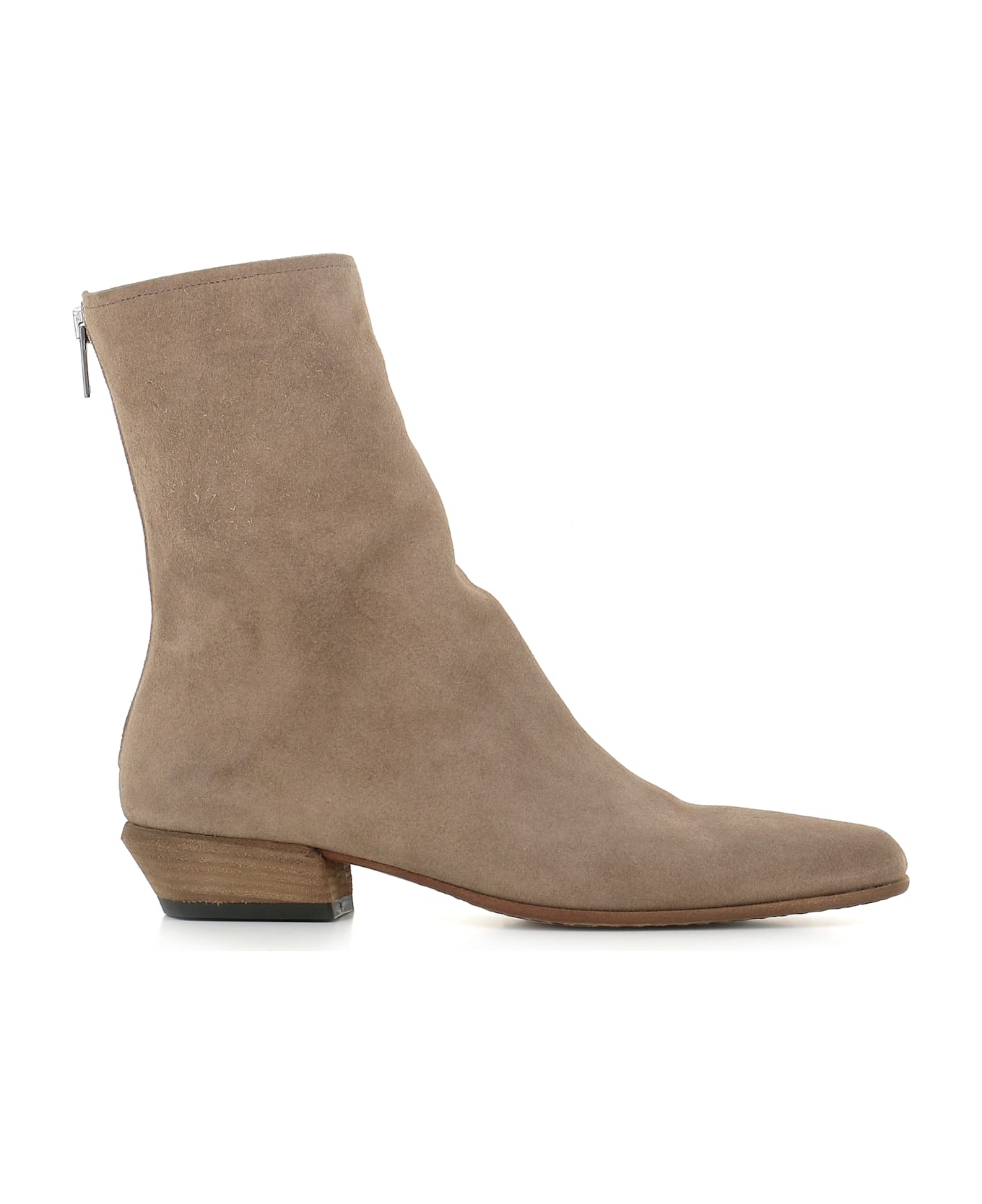 Light grey soft suede leather women's ankle boots by Pantanetti, featuring a tapered toe and rear zip fastening. Lined interior. Leather sole. Heel: 3 cm Bootleg height: 18 cm