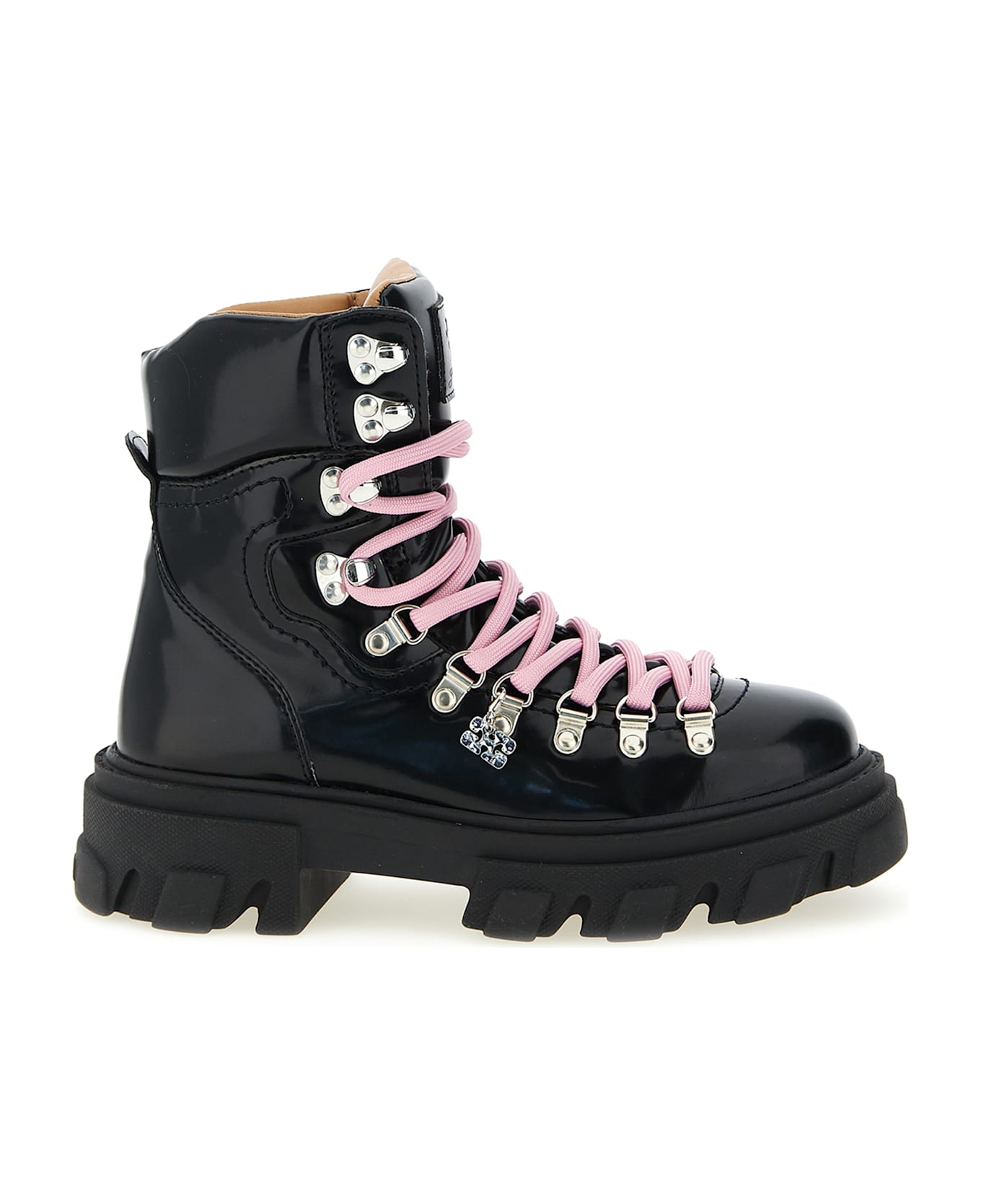 'Cleated Mountain' leather effect Oleatex® Box boots, padded tongue with tone-on-tone logo patch, lace-up closure, removable metal logo charm, rubber tank sole. Composition: 50% polyester, 50% polyurethane