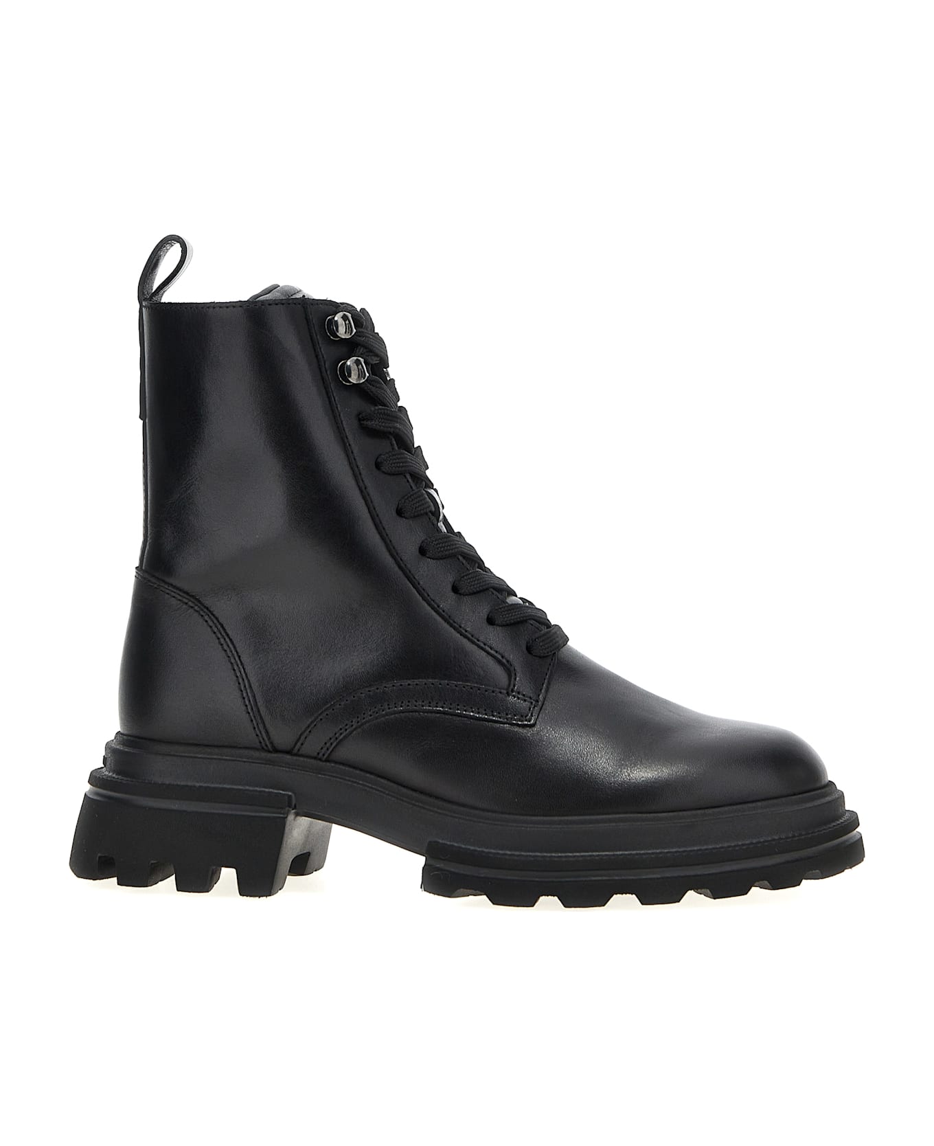 'H674' leather ankle boots with side zip closure, laces and rubber sole.