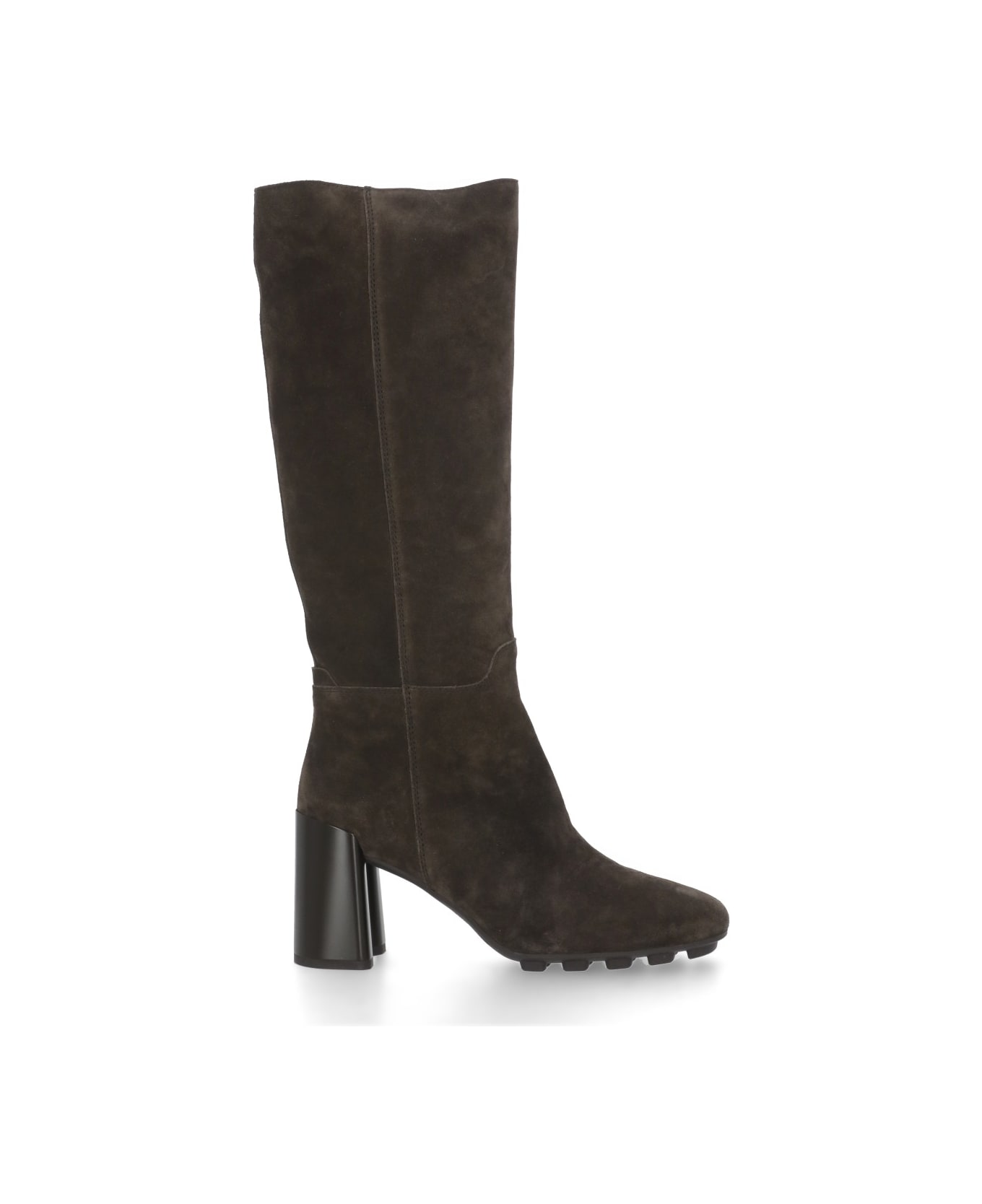 - Hogan brown suede leather woman's boots - Round toe - Side zip fastening - Raised rubber sole (9 cm)