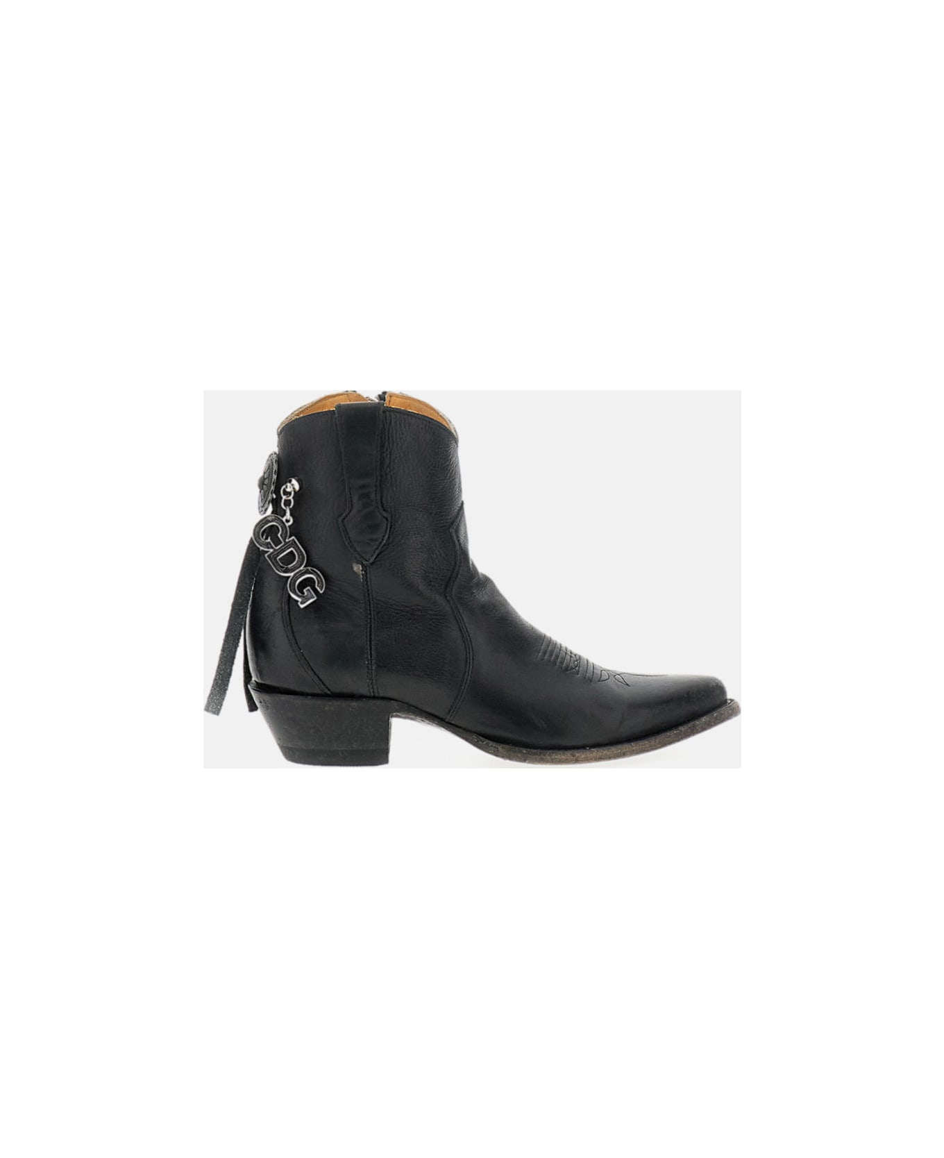 Camperos-style ankle boots. Leather upper with decorative front stitching. Tapered toe. Block heel. Leather sole. Internal zip closure. Silver-tone metal logo charm detail. Color: black. Composition: 100% Leather