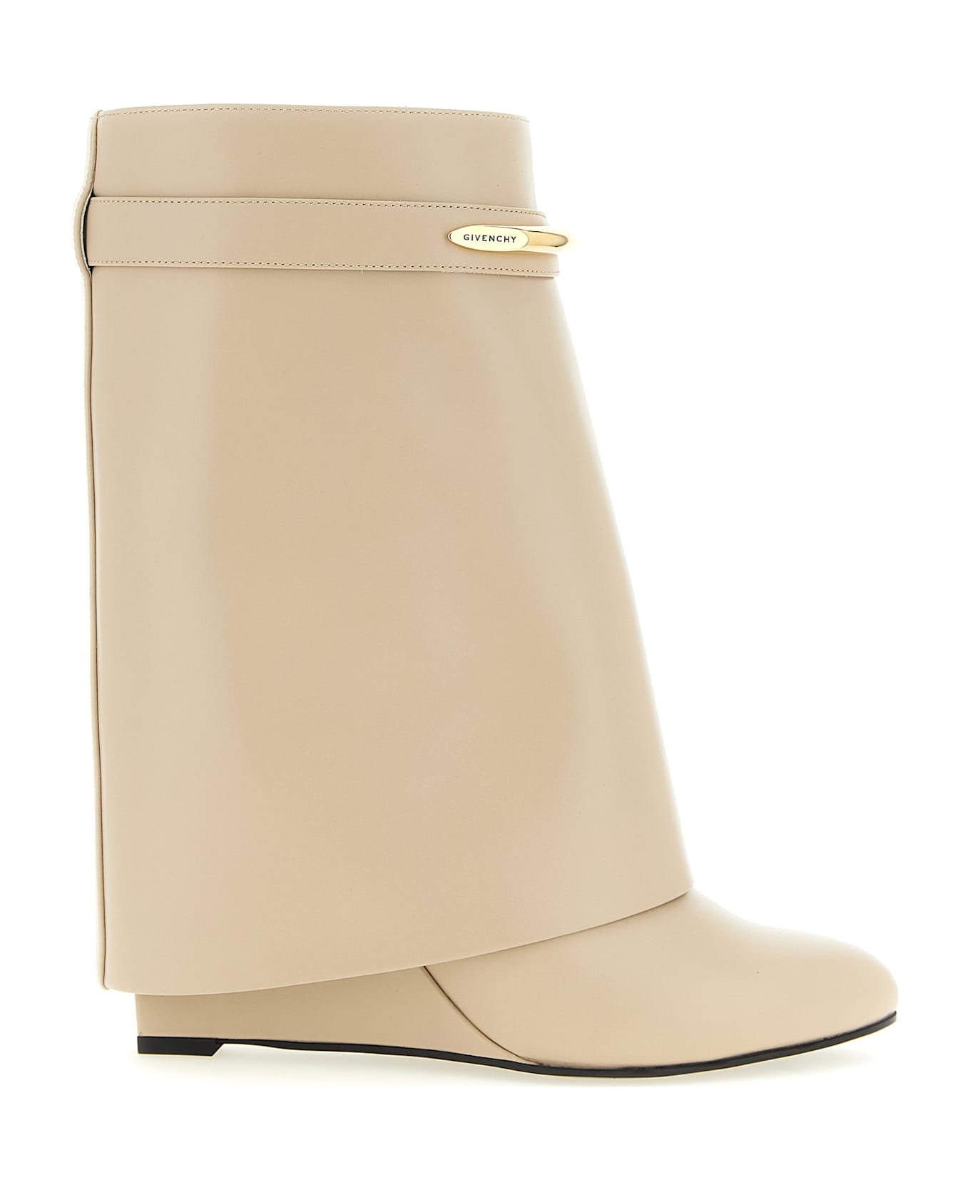 Calf leather ankle boots, 'Shark Pinch' line, pointed model, tubular leg with metal gripper detail with engraved logo, covered wedge, leather sole. Composition: 100% calfskin leather (Bos Taurus)