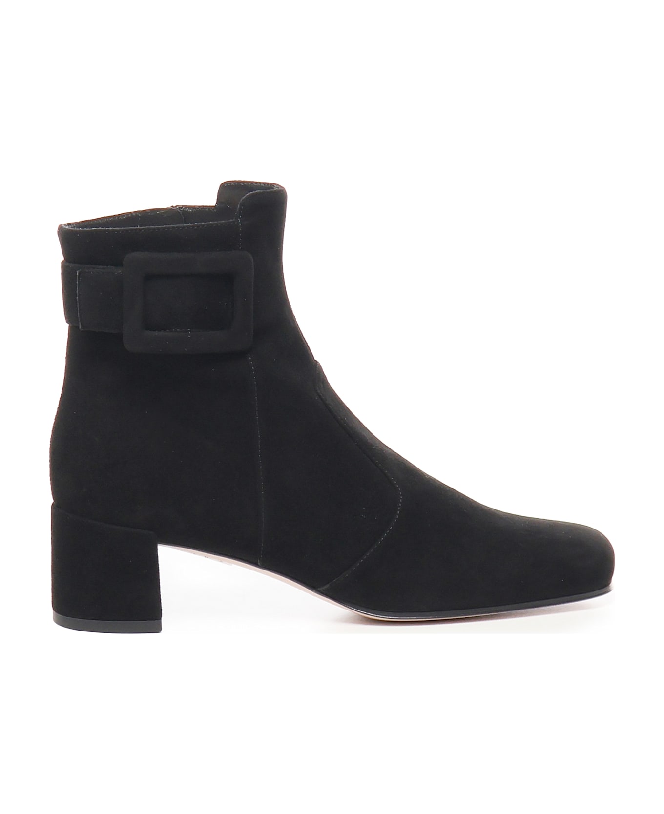 -Suede goat leather upper -Side buckle -Leather insole -Geometric heel -Made in Italy -Color: Black