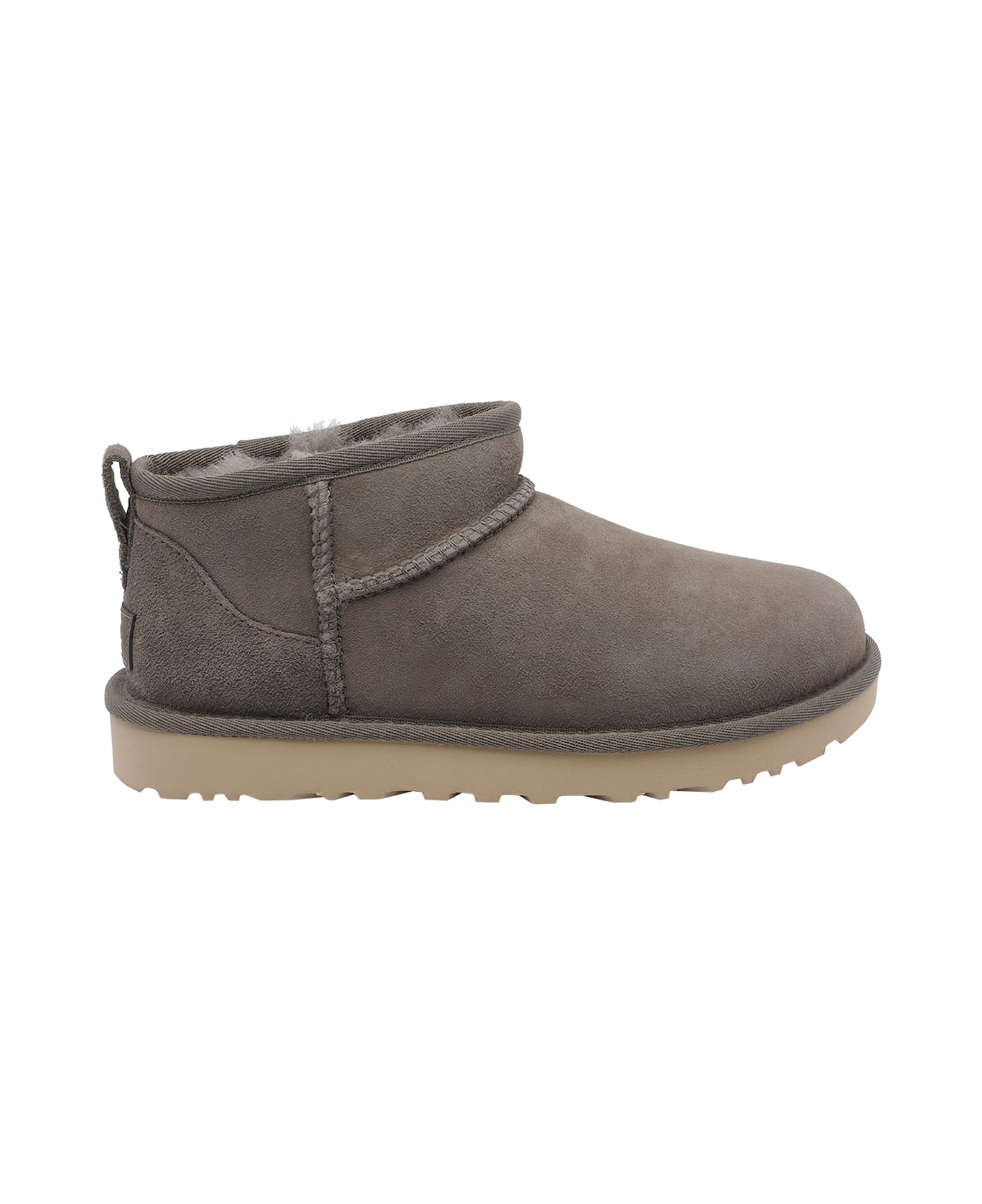 Ugg grey Classic Ultra Mini booties, suede upper, round toe, logo, grey
