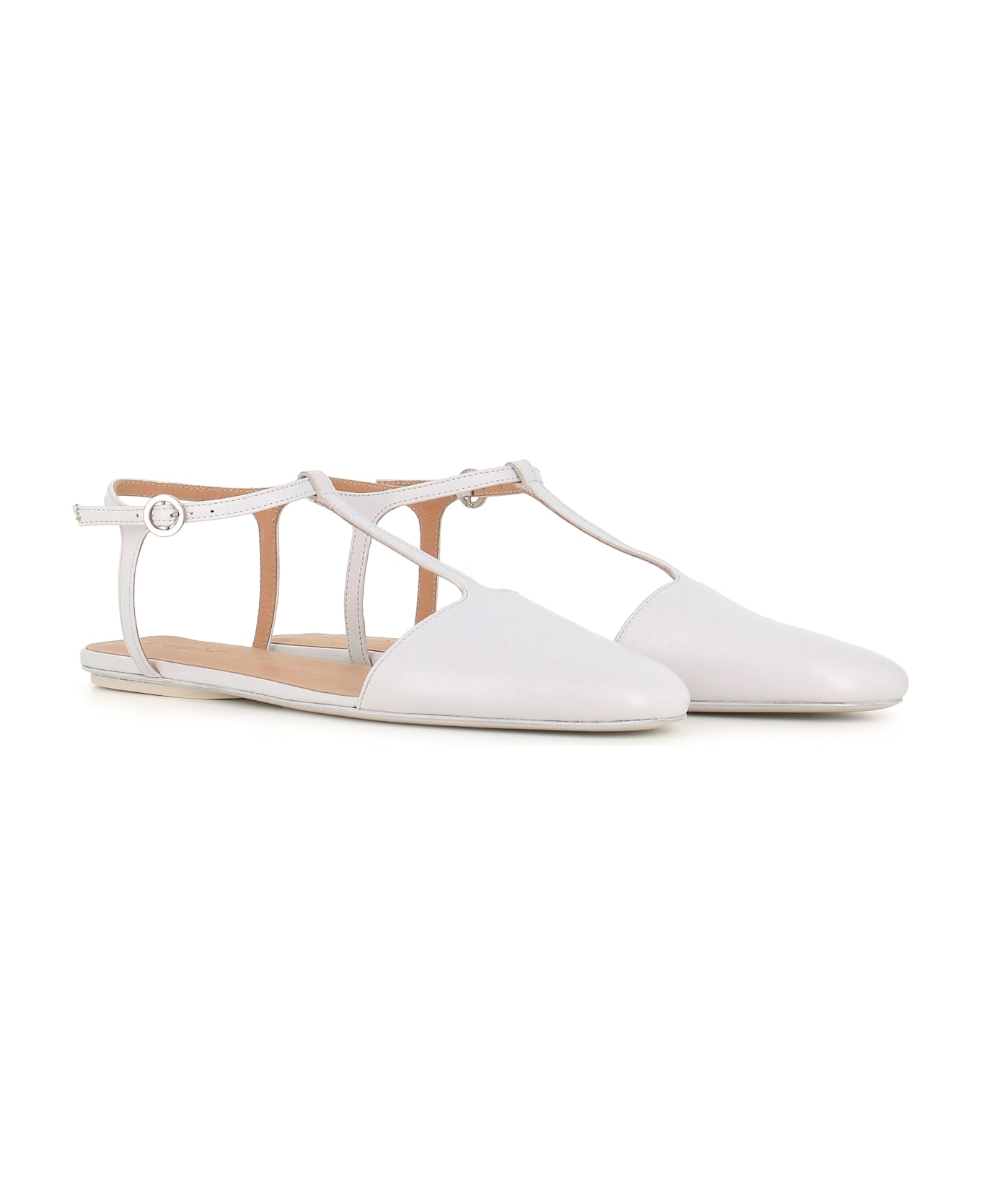 White leather women's ballerina flat by Marsell, featuring by an ankle strap closure. Lined interior. Leather sole. Heel: 0,5 cm