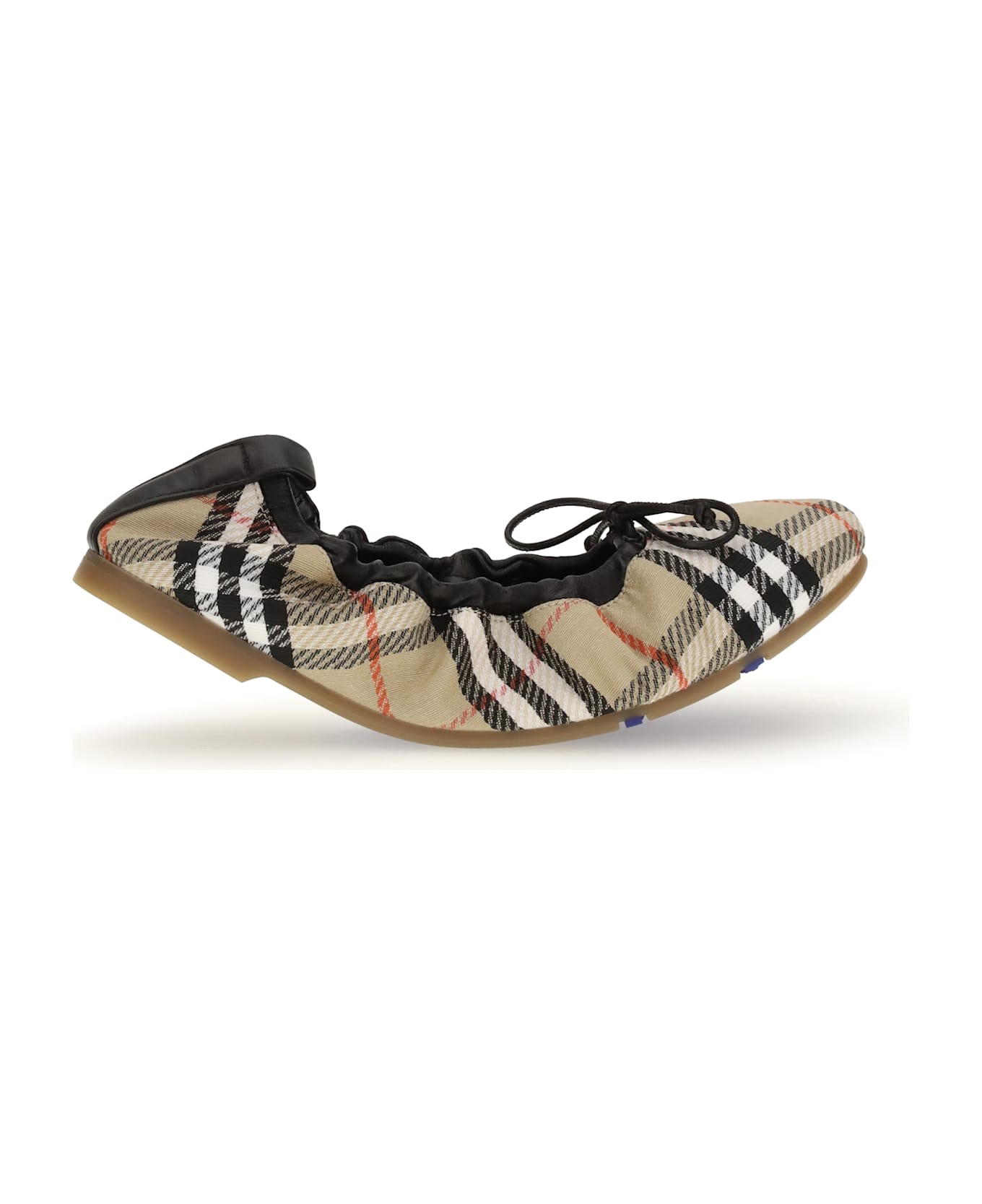The fawn check ballerinas by burberry feature an elegant and comfortable design. elasticized edges ensure a perfect fit, while the round toe gives softness and femininity. the quilted leather insole offers extended comfort, and the equestrian knight design on the sole adds a distinctive and iconic brand detail.