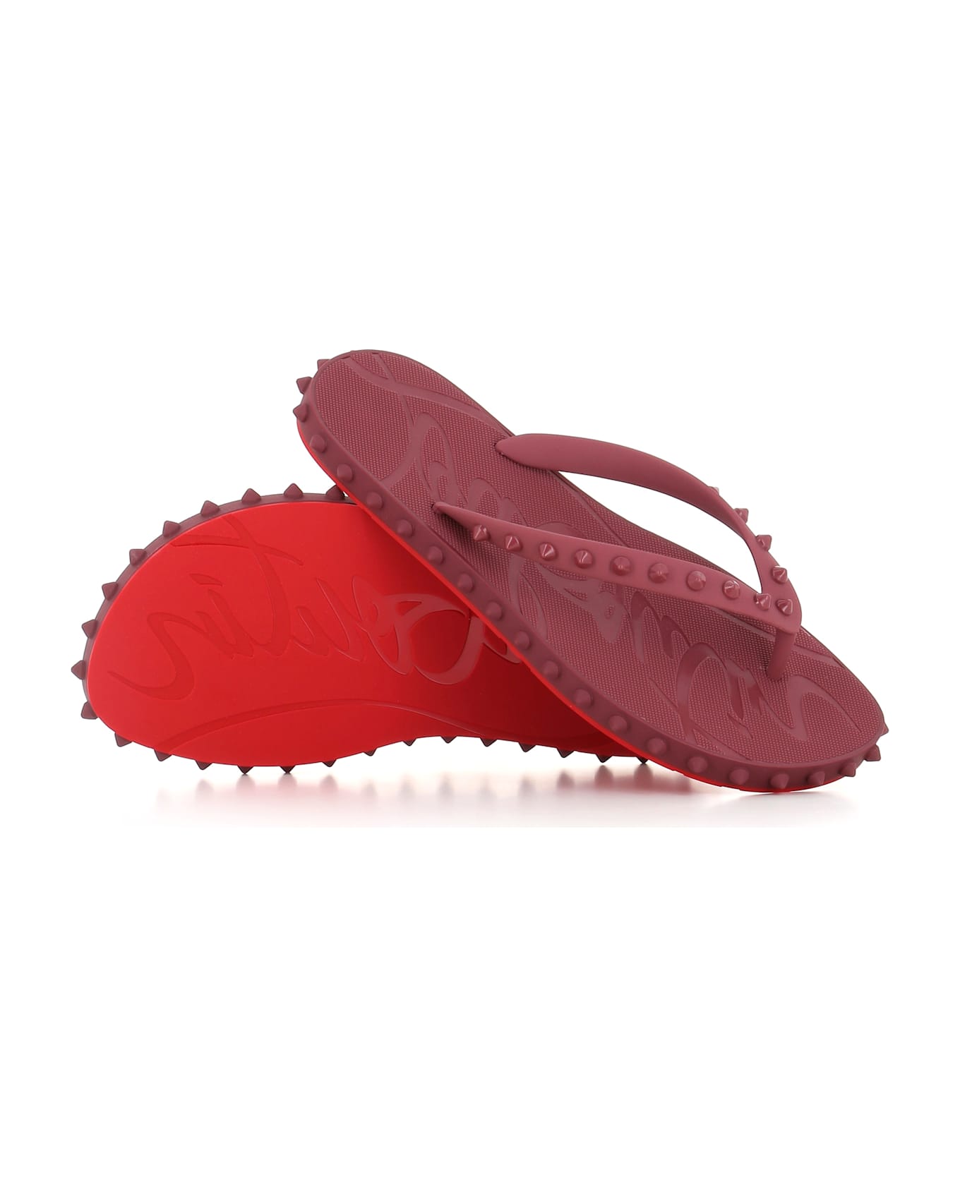 Burgundy women's Flip-flop by Christian Louboutin, featuring by thin straps decorated with a row of tone-on-tone studs, a characteristic detail of the Maison Christian Louboutin. Heel: 1,5 cm