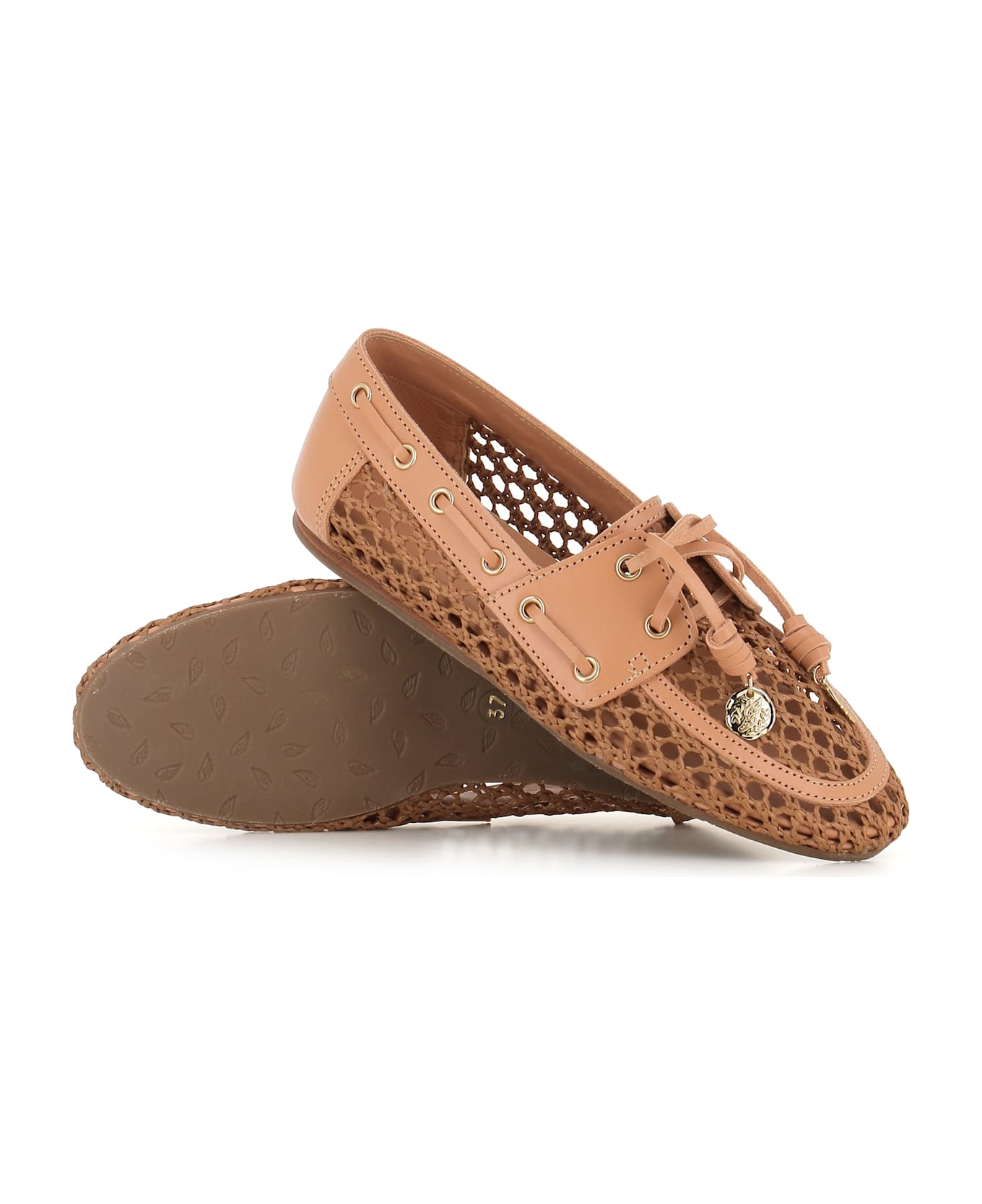 Natural women's rafia and leather loafer by Ancient Greek, featuring by laces rolled and gold charms hanging from the laces. Rubber sole. Internal rise of 1 cm. Heel: 1 cm