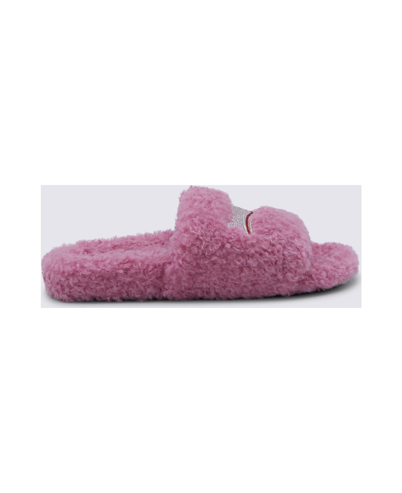 Pink flats from Balenciaga featuring round open toe, open back ,slip-on style, lettering logo and flat rubber sole. Composition: _cover, 100% Tex ;sole, 100% Rubber