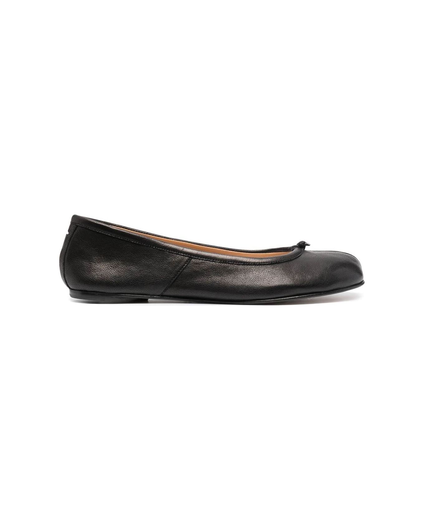 Ballerina shoes Tabi toe Round toe Flat sole Black Leather