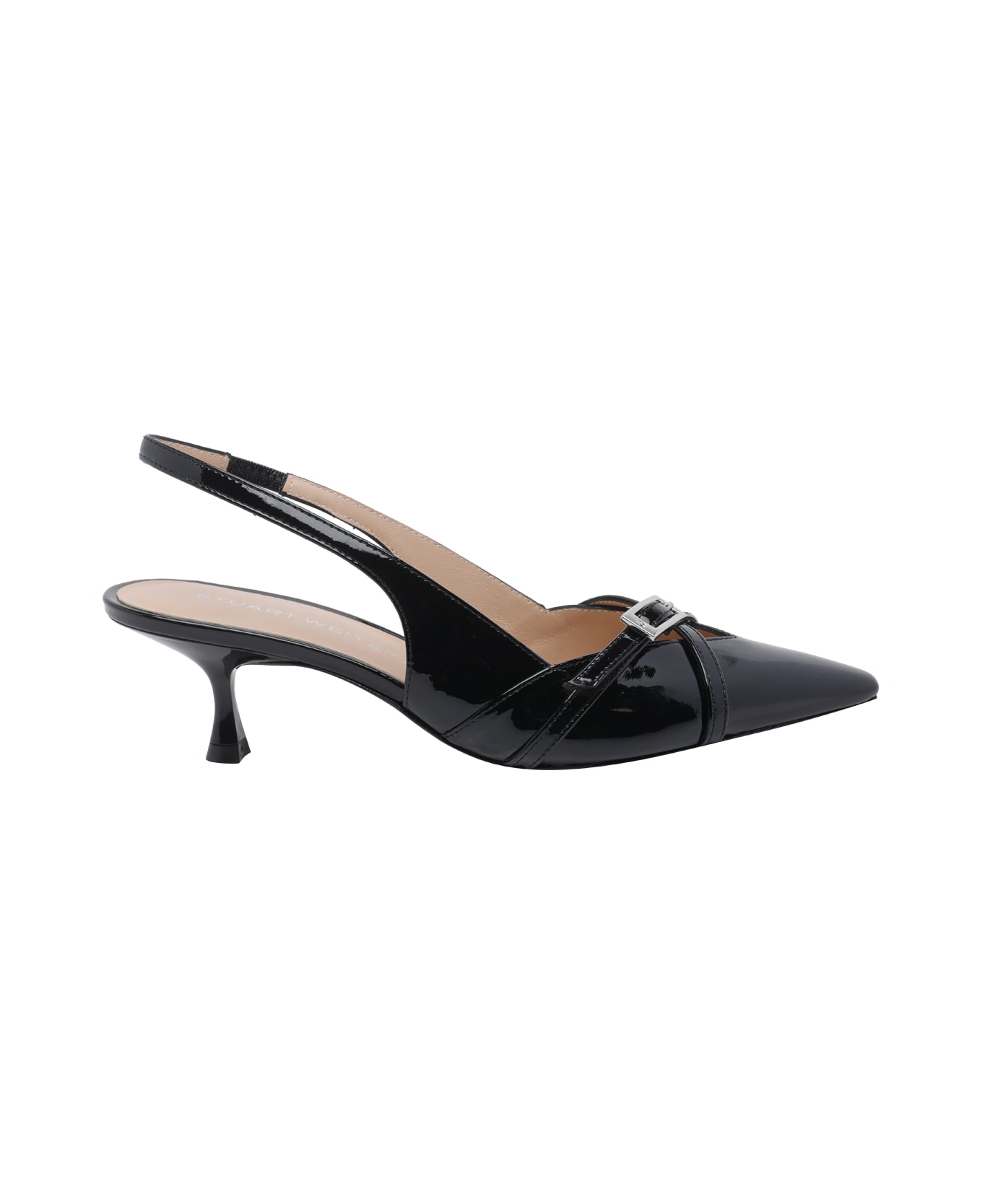 Stuart Weitzman black Georgie slingback, pointed toe, elasticized model, patent leather