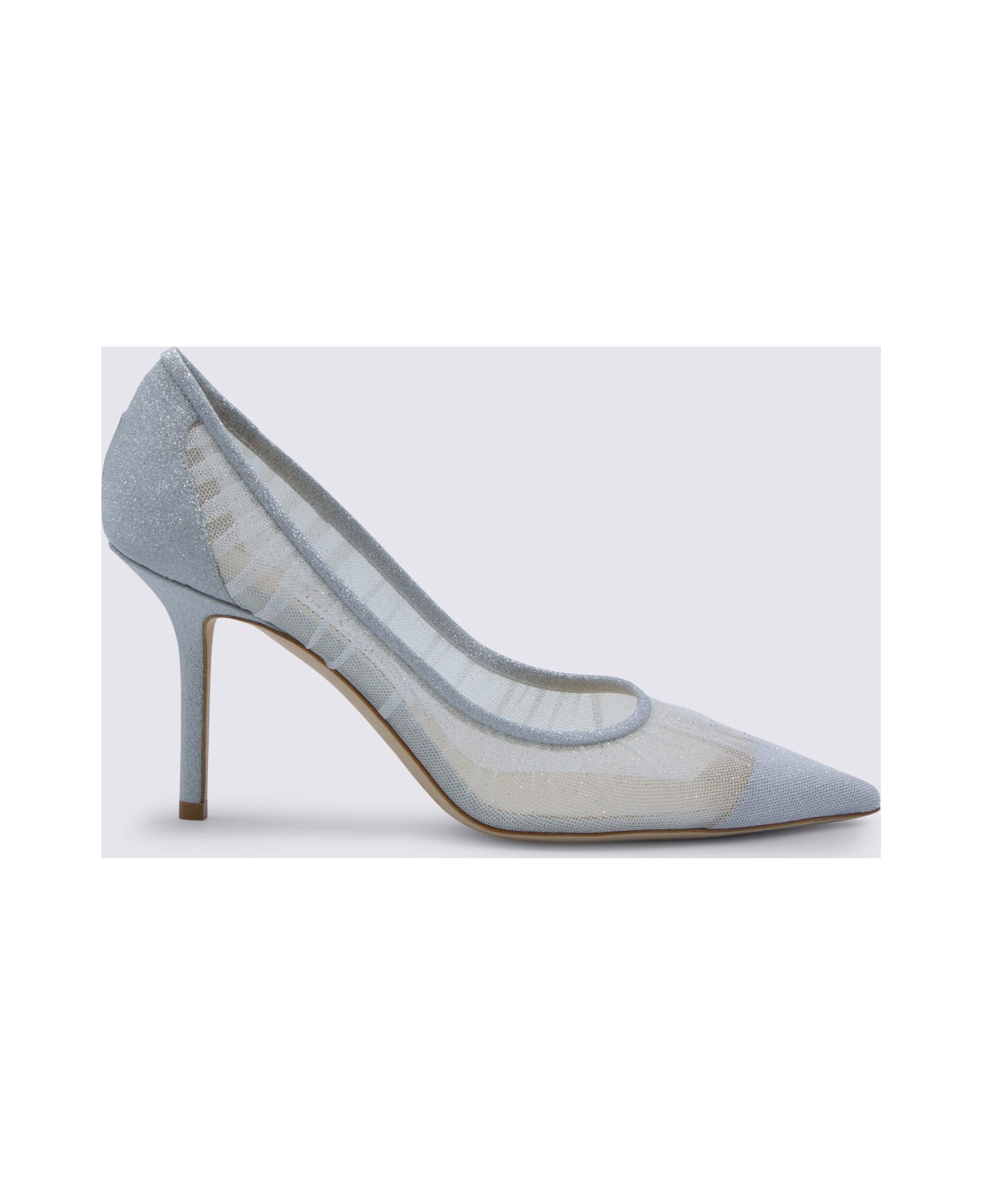 Ivory and silver mesh Love pumps from Jimmy Choo featuring pointed toe, mesh inserts, slip-on style and logo details. Composition: _, 100% Textile