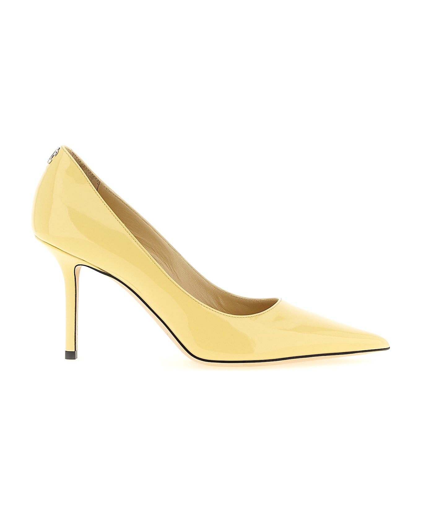 'Love' pumps in glossy patent leather with pointed toe logo, back metal logo, stiletto heel, leather sole. Composition: 85% lh 5% sa 5% pt 5% me