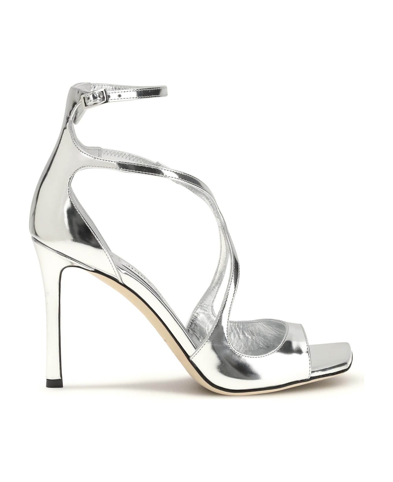 The azia 95 patent leather sandals by jimmy choo combine elegance and modernity with their slim heel and square toe. made of patent leather, they feature a double strap with internal elastic, a hand-applied leather sole and an adjustable ankle closure for a sophisticated and comfortable style.