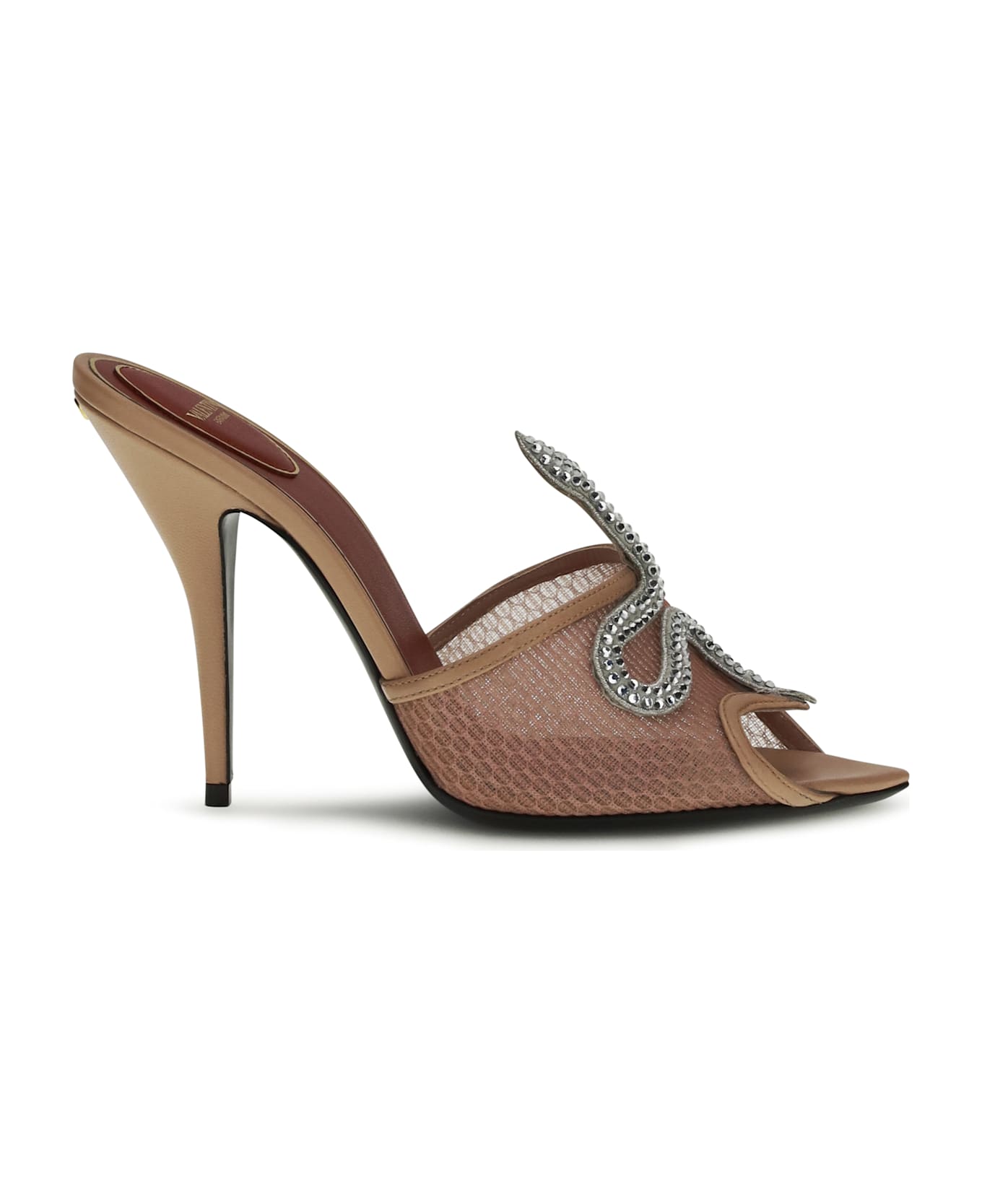 The coeur vipère sandals by valentino garavani in lightweight mesh combine elegance and originality. crafted in kid leather with precious details, they feature the iconic snake adorned with sparkling crystals and the vlogo signature in antiqued brass, adding a distinctive touch of luxury. perfect for completing refined looks with style and personality. Composition: 80% % Goatskin/hircus Goatskin, 20% % Polyester