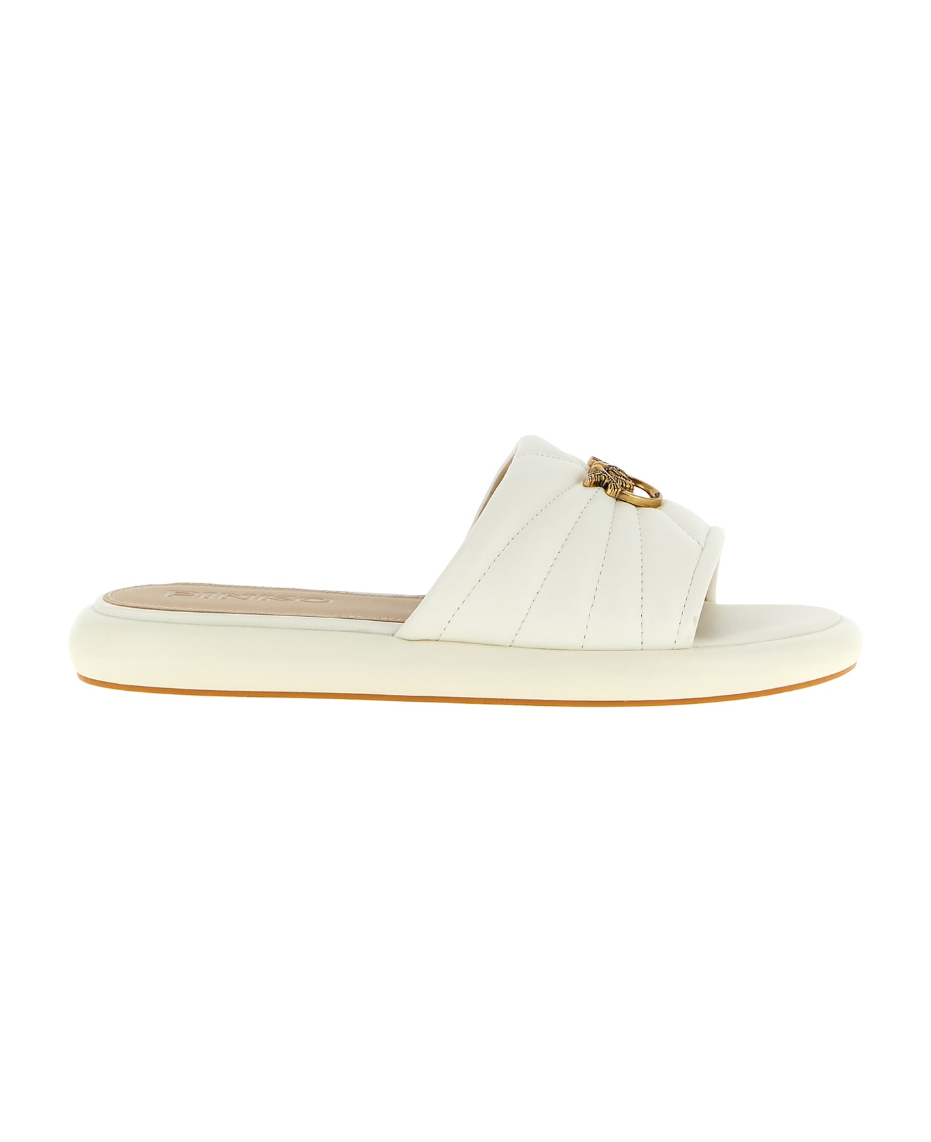 'Fiona 03' quilted nappa leather slides with metal 'Love Birds Diamond Cut' logo on the front, rubber sole.