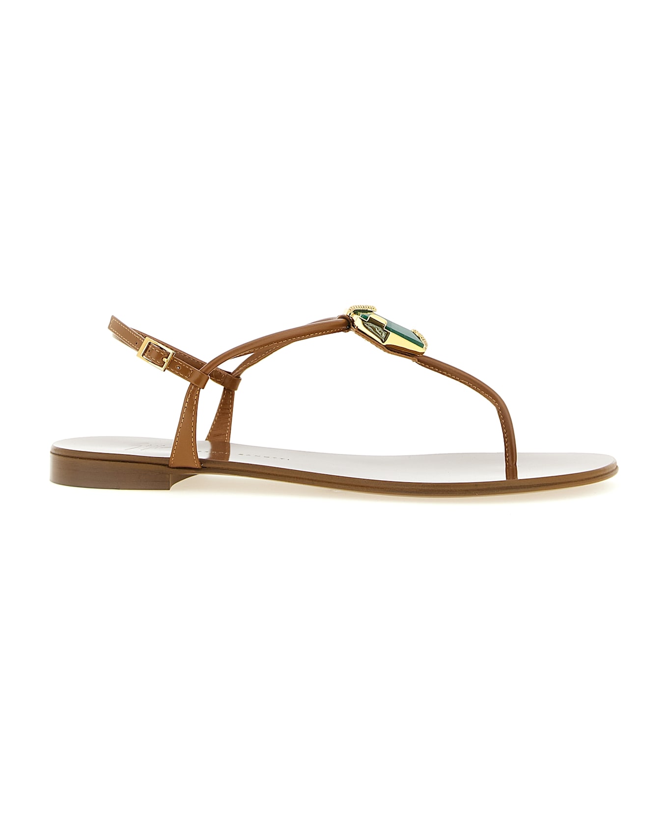 'Ganass' leather thong sandals with front jewel application, adjustable back strap, leather and rubber sole.