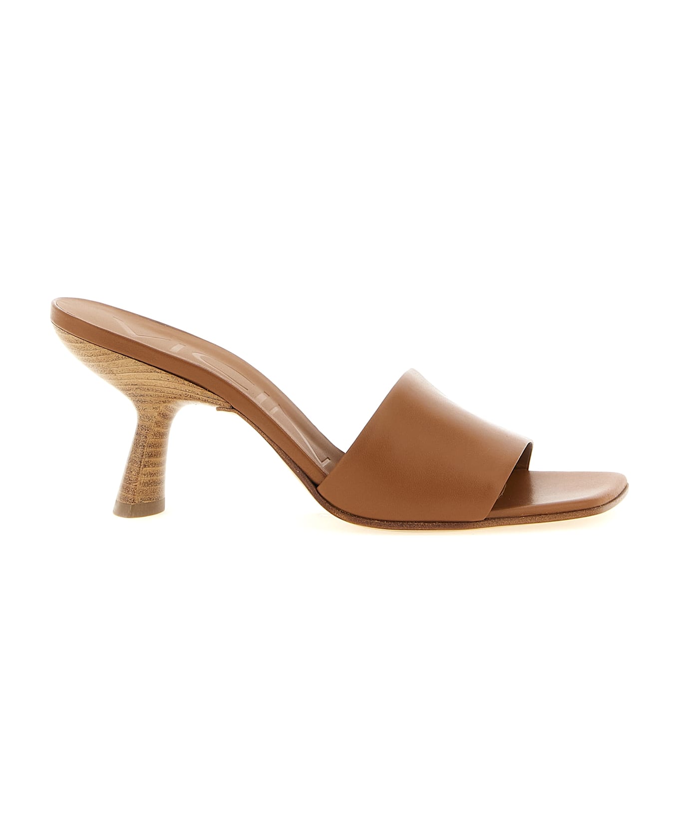 'Lavenue' leather sabots with square toe, front band, contrast spool heel, leather sole.