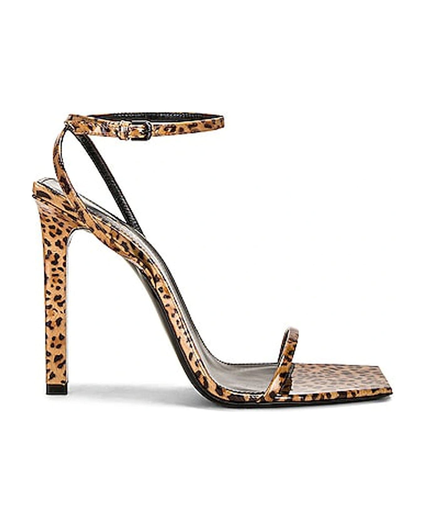 Composition: 100% calf leather Inner: Leather Insole: Leather Sole: Leather Open toe Ankle side buckle fastening Square toe Heel 11 cm Made in Italy