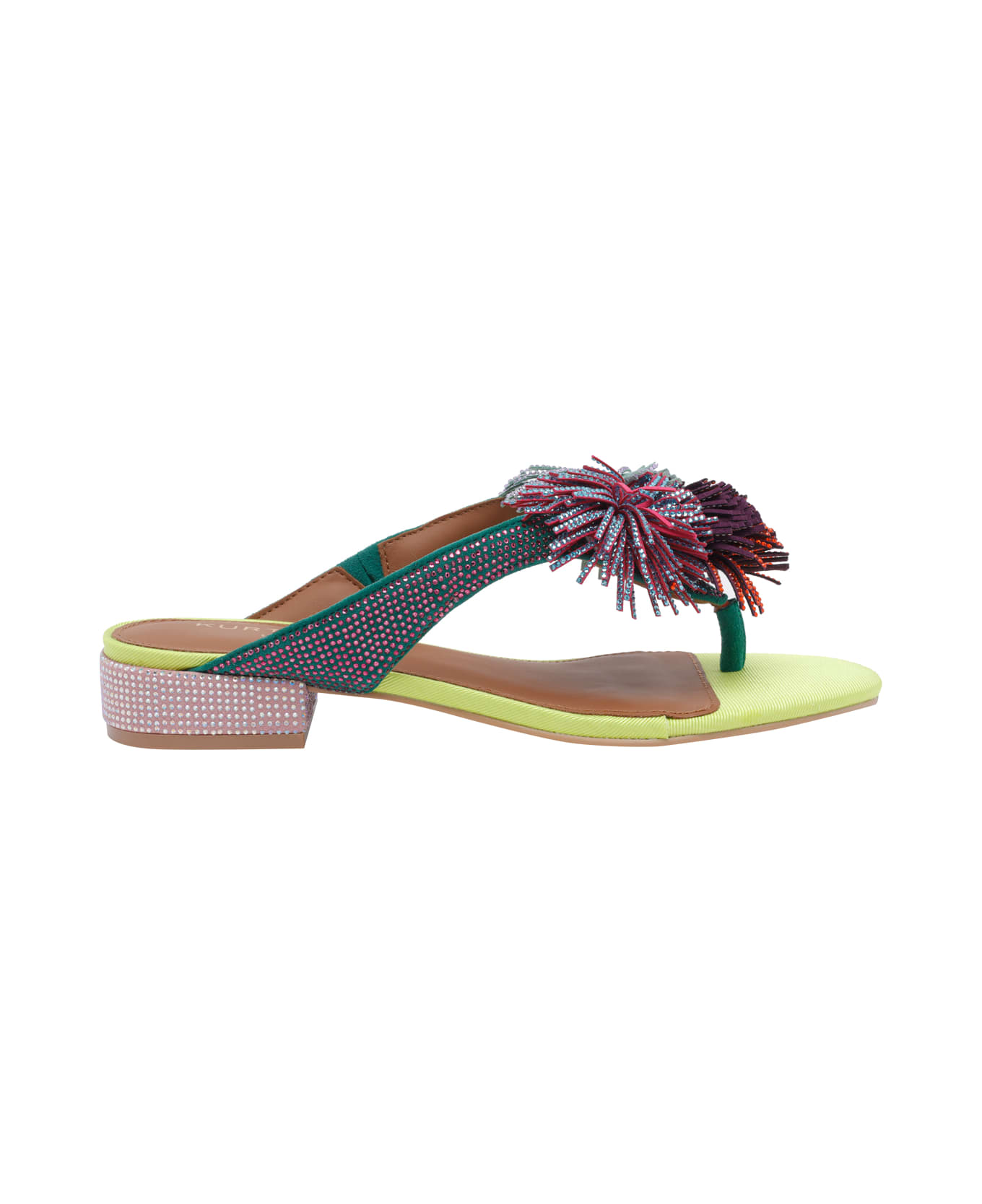 Kurt Geiger metal Pom Pom T-bar flat sandals, round toe, Pom Pon detail