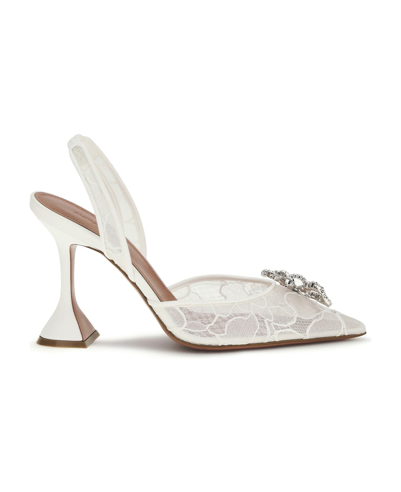 The rosie slingback sandals by amina muaddi stand out for their open-toe design and iconic sculptural heel, a hallmark of the brand. embellished with a decorative bow featuring crystals, they add a luminous and sophisticated touch, perfect for enhancing any look with contemporary elegance.