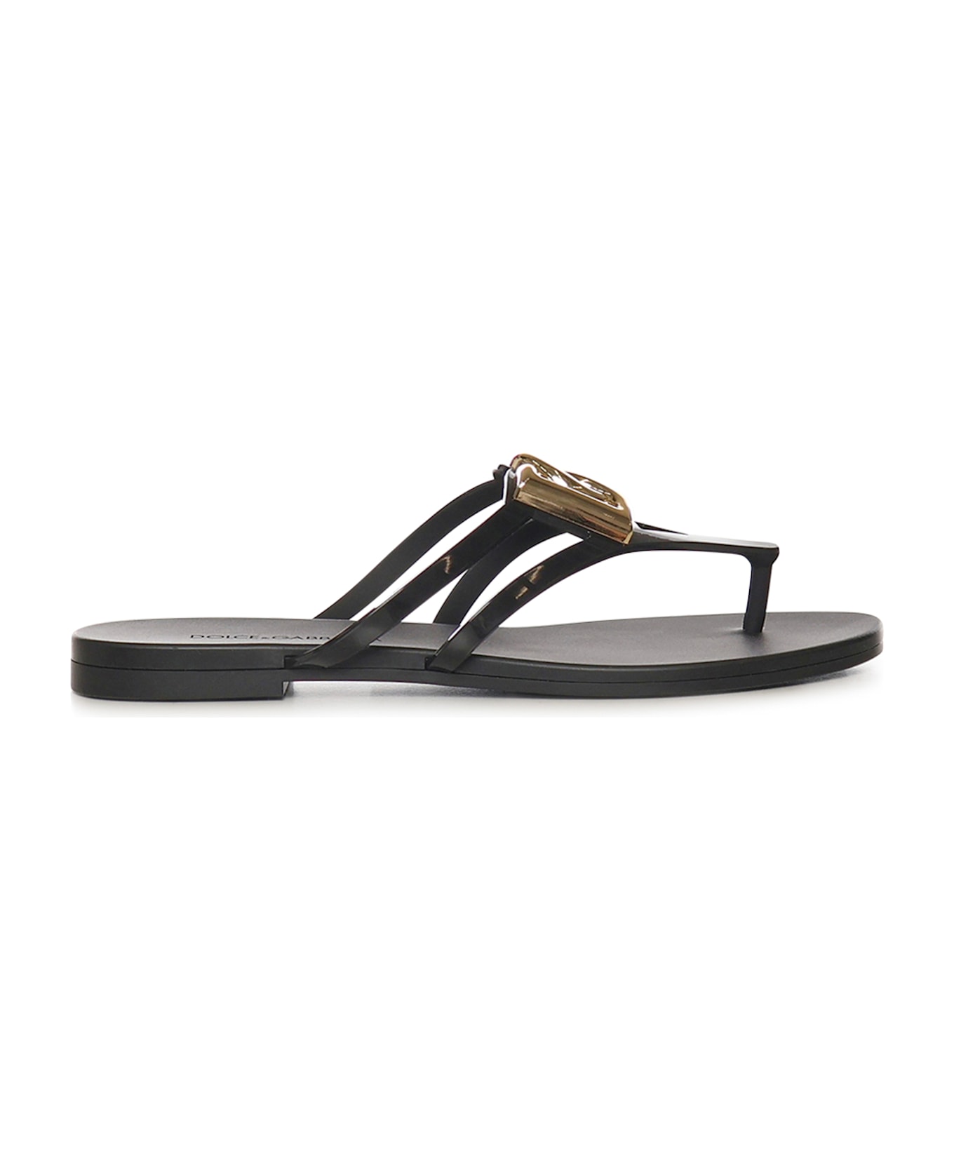 -Rubber upper -Round open toe -Metal logo -Made in Italy -Color: Black, Gold