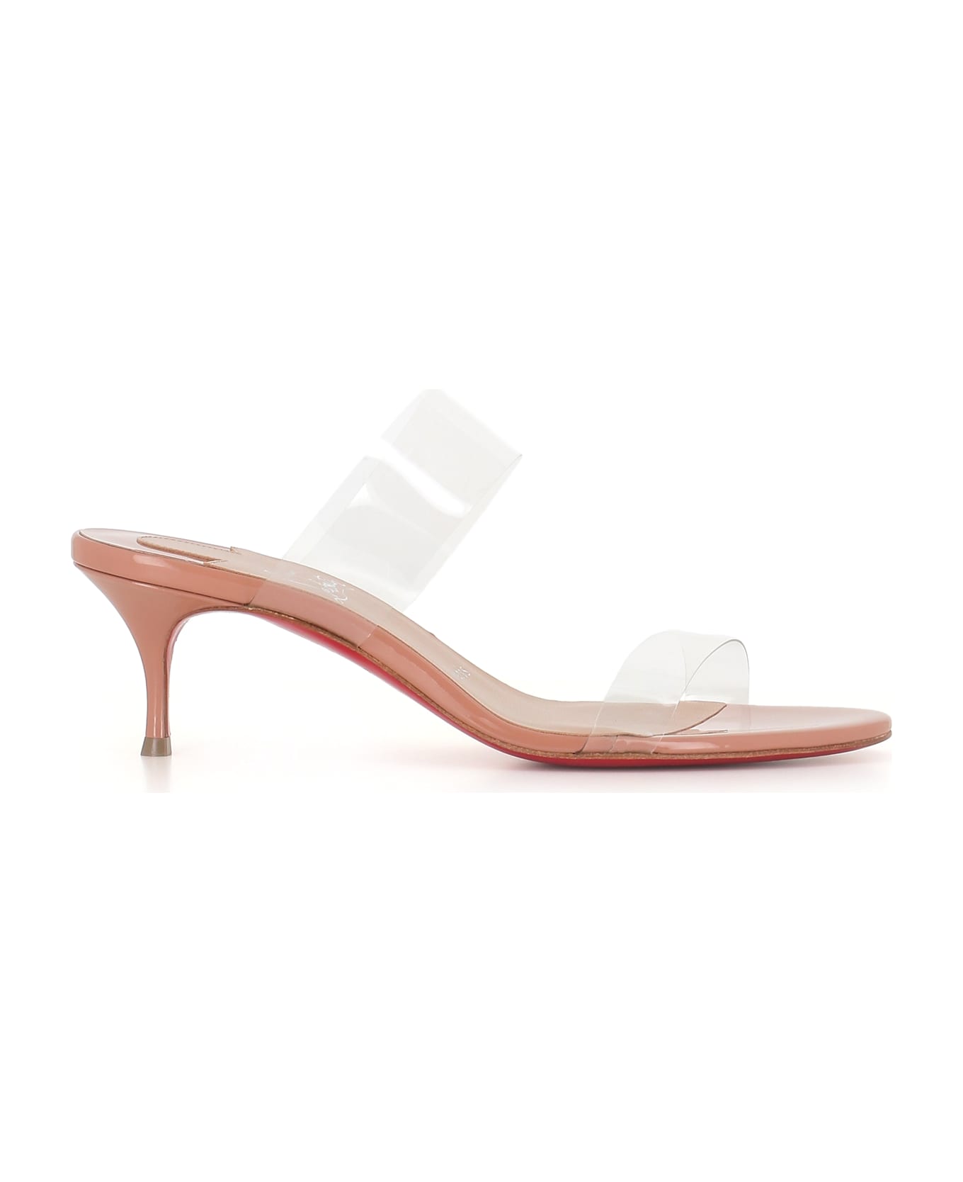Nude patent calfskin women s sandals by Christian Louboutin, featuring two soft, transparent TPU straps. Leather sole. Heel: 5,5 cm