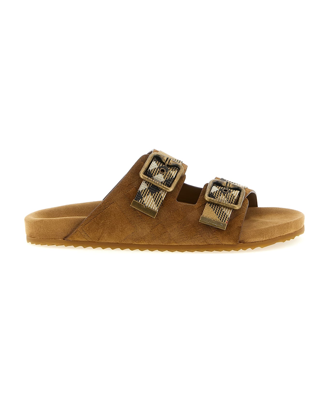 Urchin' suede sandals with embossed Check pattern, adjustable straps with B-shaped buckles and Burberry Check jacquard and shaped rubber sole. Composition: 70% lh 24% polyamide 6% polyester