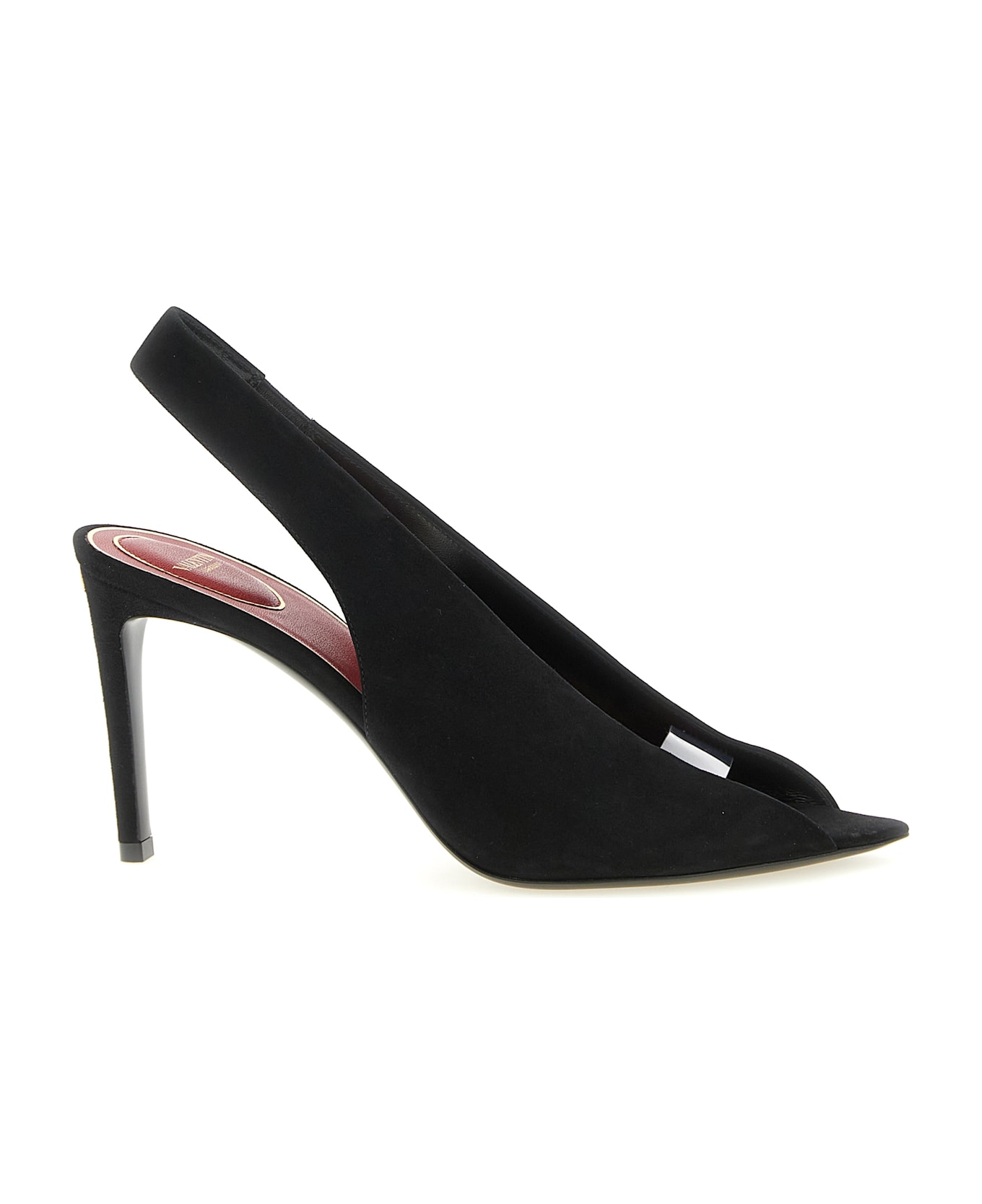 'Révélé' suede slingbacks, open-toe pointed model with transparent polymer material band, heel with antiqued brass finish metal 'VLogo Signature' applied, leather sole. Composition: 100% goat leather (Capra Hircus Hircus)