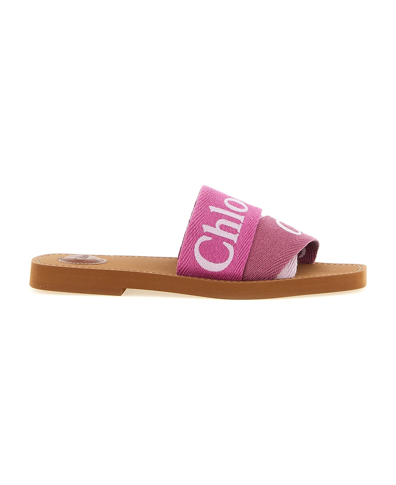 'Woody' sandals with logoed linen band and leather sole. Composition: 90% linen, 10% polyester