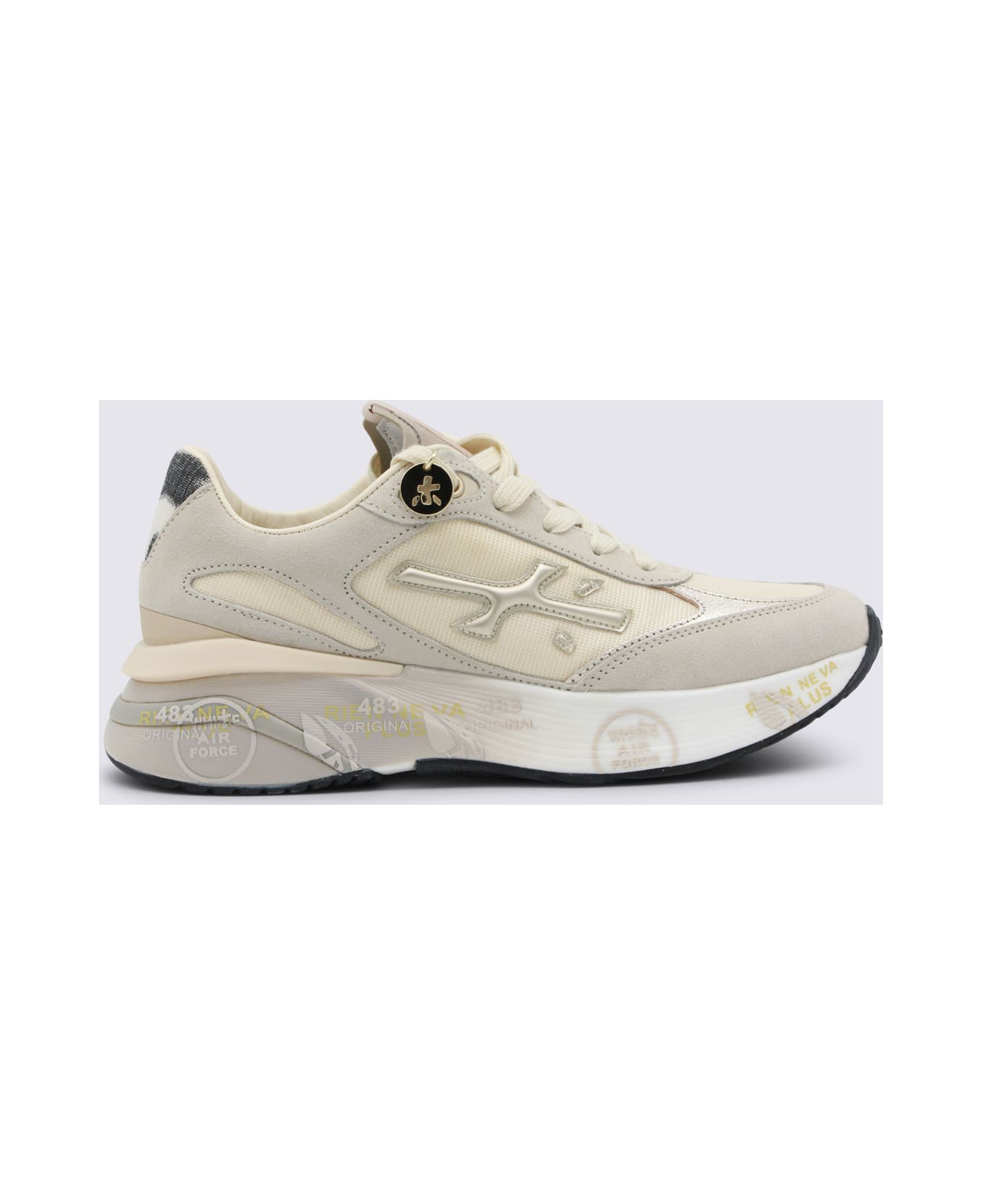 Beige Moerun sneakers from Premiata featuring round toe, laces fastening, logo, contrasting heel counter, branded insole and rubber sole.