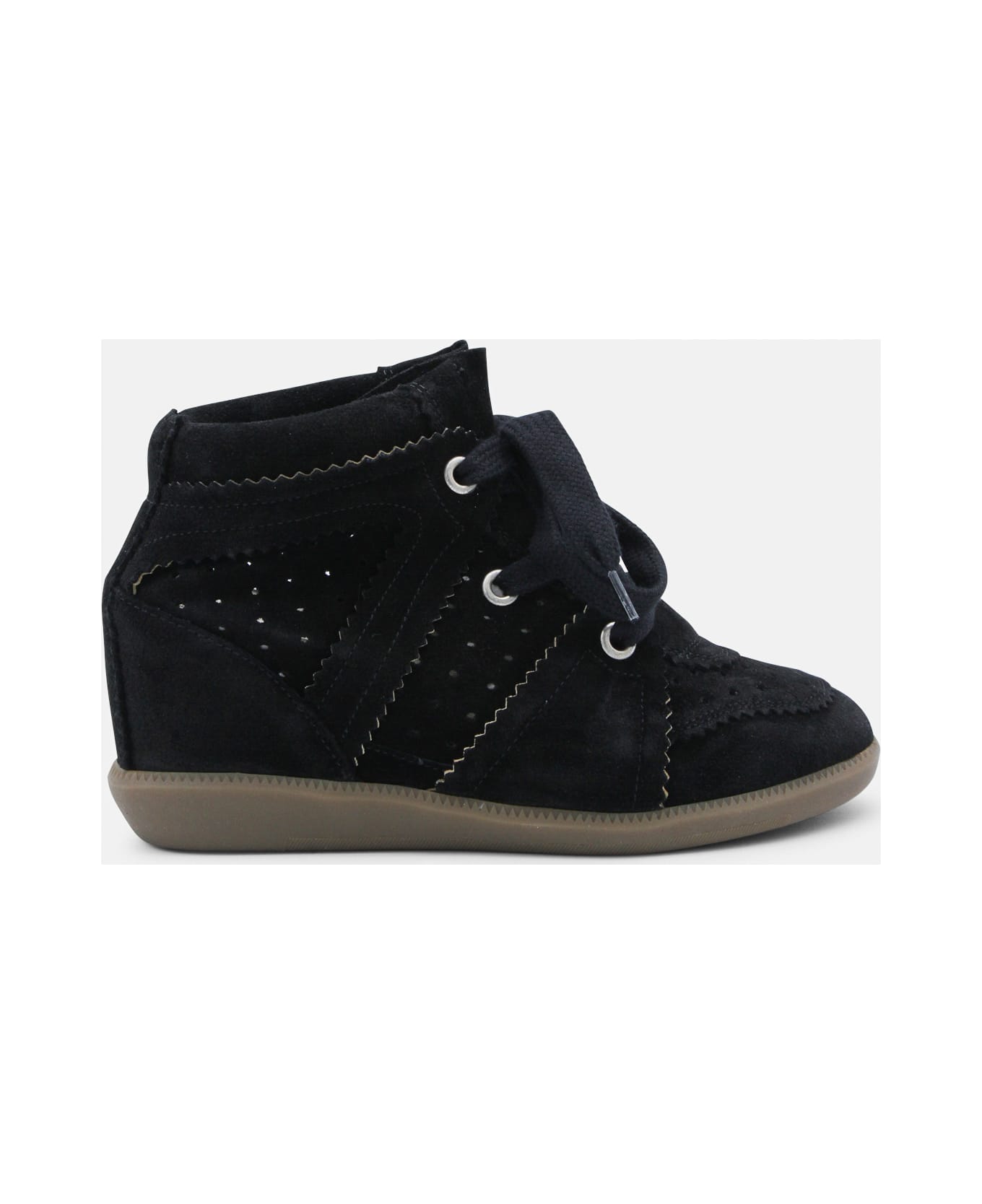 Black suede Bobby sneakers from Isabel Marant featuring rubber sole, inside platform heel, cotton laces and logo details. Composition: _cover, 100% Le Sole, 100% Rubber