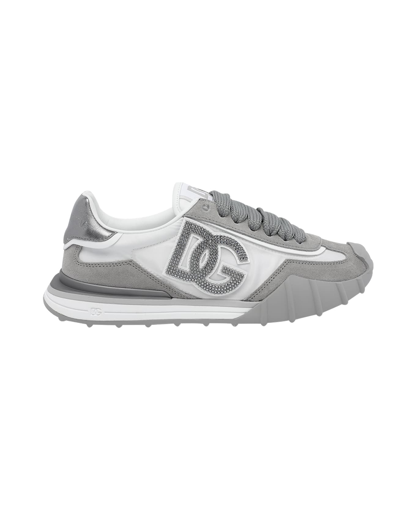 Dolce&Gabbana white and grey DG Athletic sneakers, logo on side, laces closure, suede and leather upper, round toe Composition: 100% Fabric, 100% Suede Leather/rubber Sole