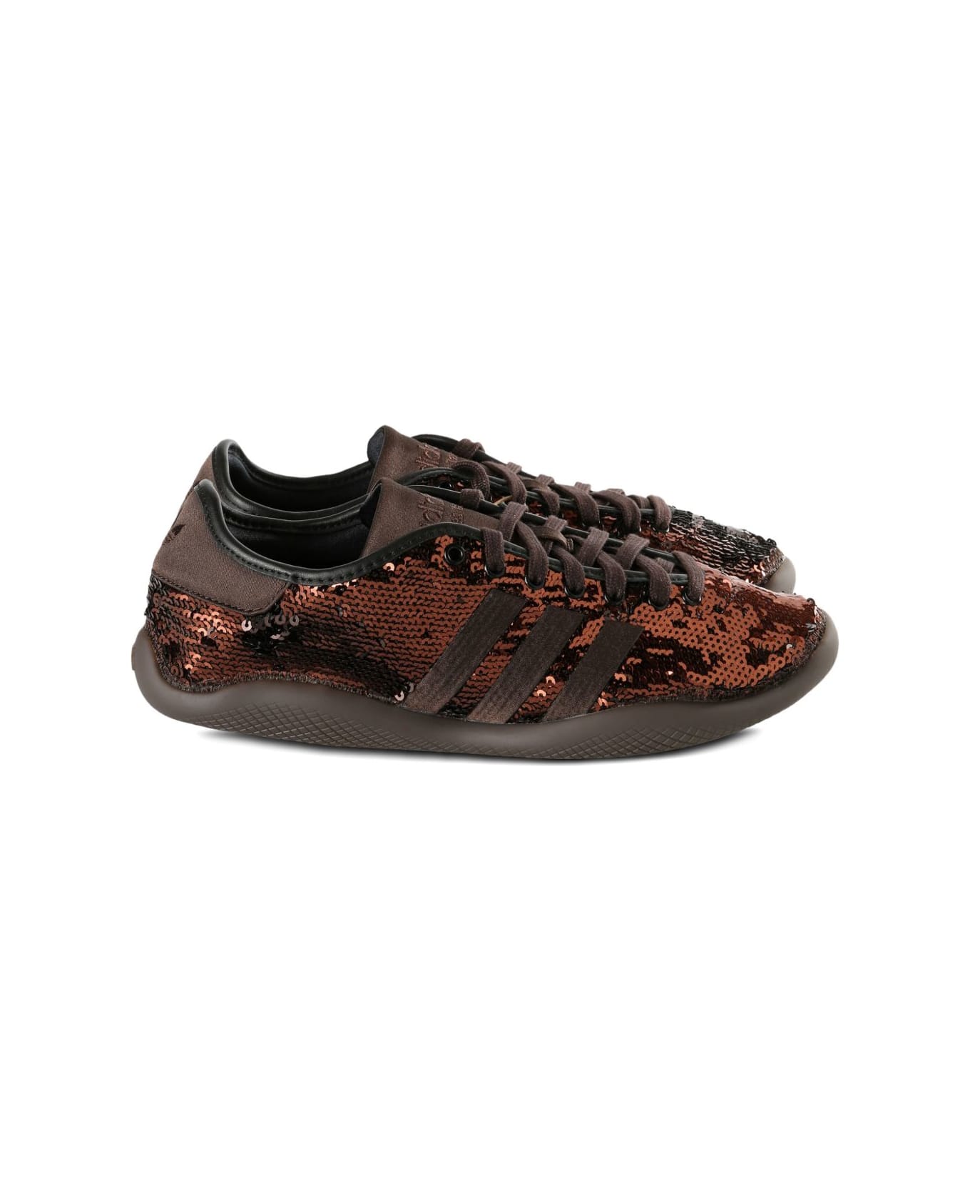 brown sequin embellishment stripes lace-up fastening round toe