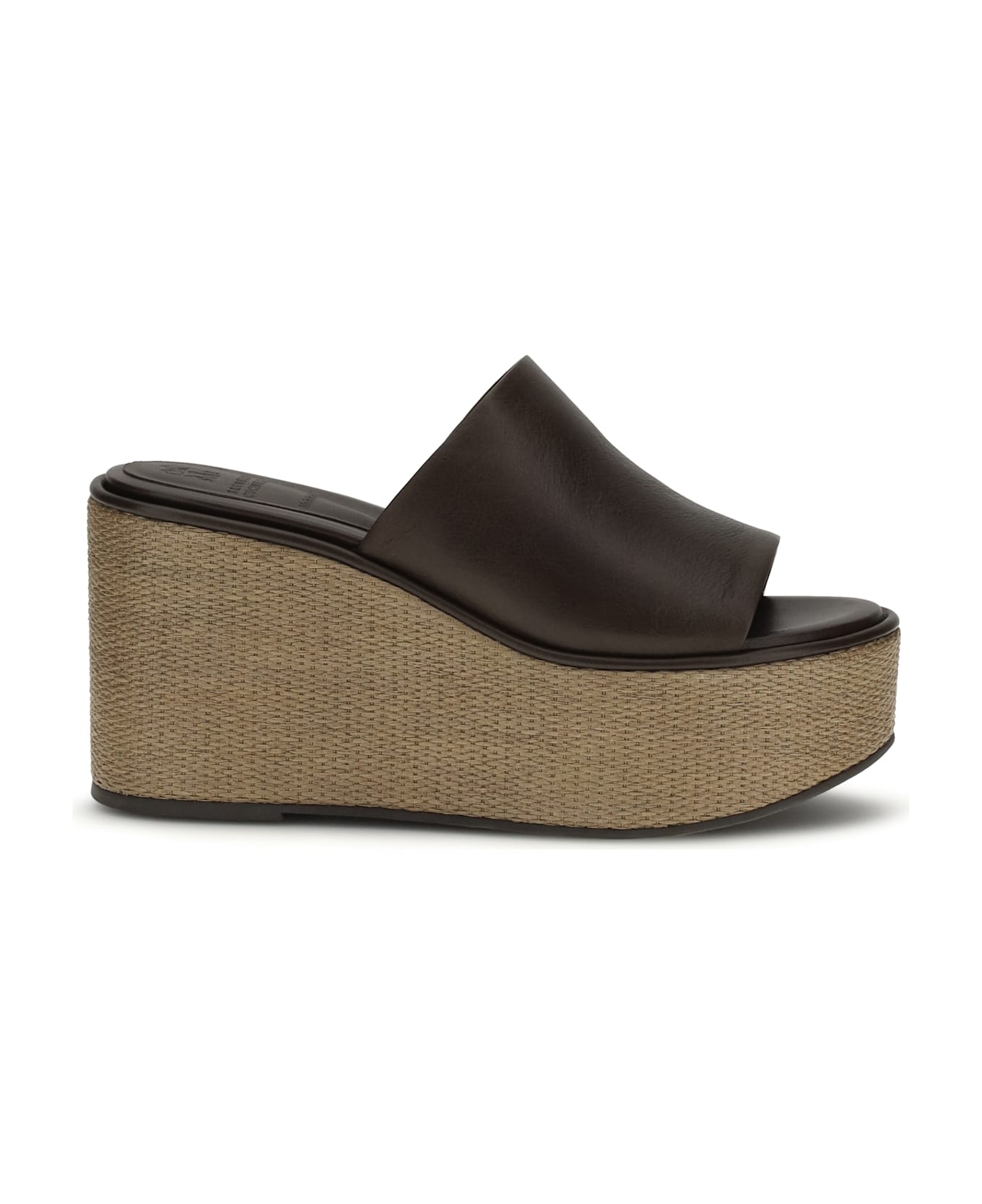 The leather wedge sandals by brunello cucinelli offer the perfect blend of elegance and comfort. the leather lining and sole guarantee a refined fit, while the rubber sole ensures greater grip and stability. a versatile model, ideal for adding a touch of luxury to a summer look.