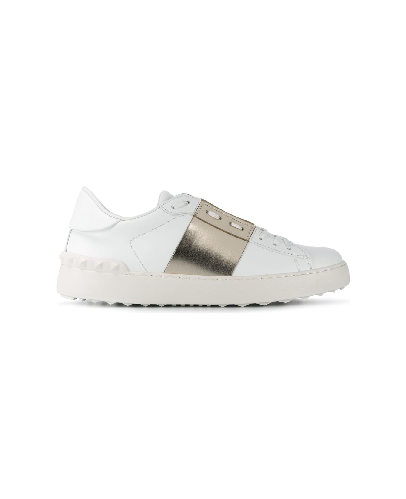 white/gold leather front lace-up fastening slip-on style round toe rubber sole metallic effect colour-block panelled design Composition: Calf Leather, 100%