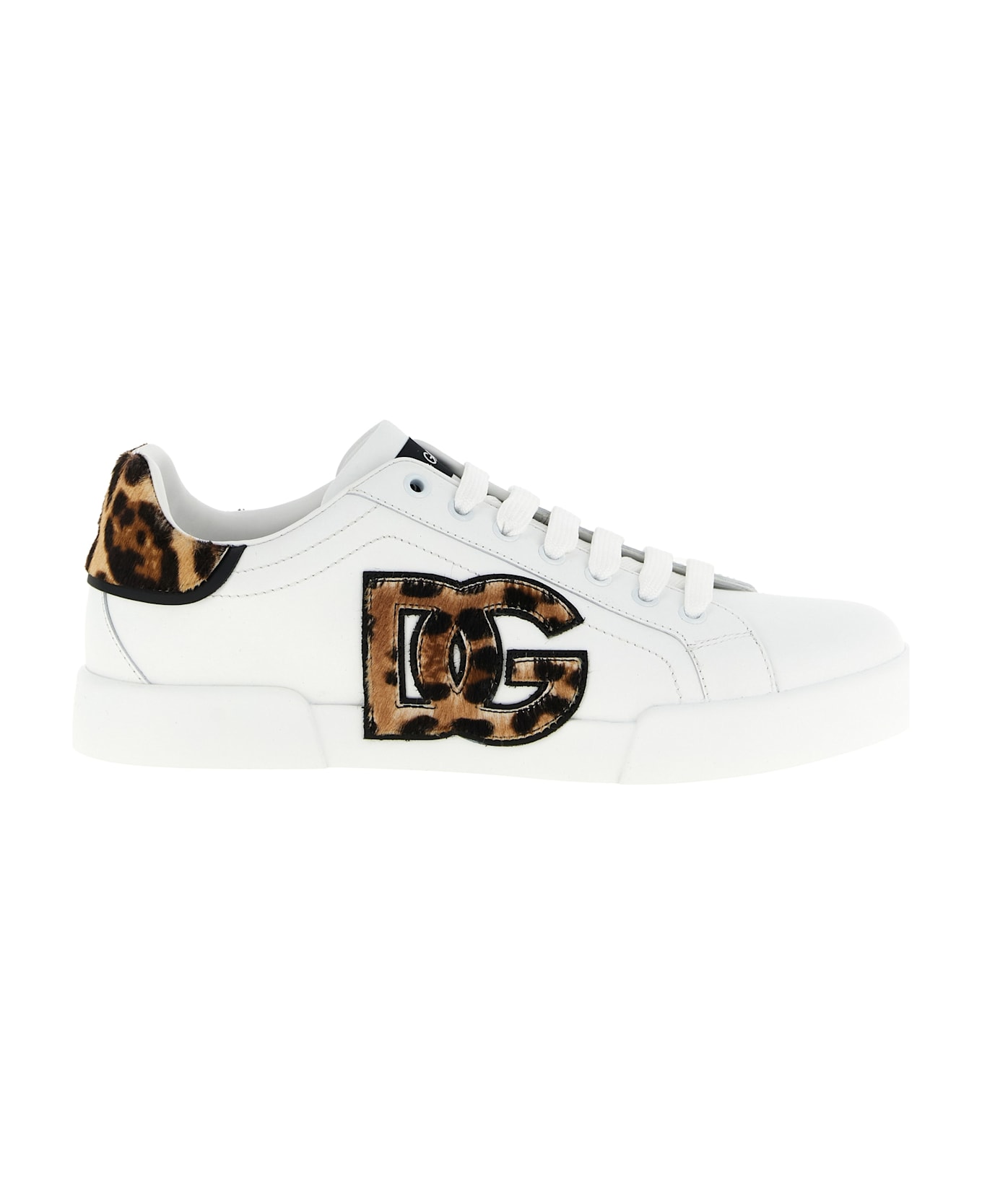 'Portofino Light Strobel' leather sneakers, side logo patch and leopard-print pony leather heel, lace-up closure, felt insole, leather wrapped latex insole, EVA sole. Composition: 100% calfskin leather (Bos Taurus)