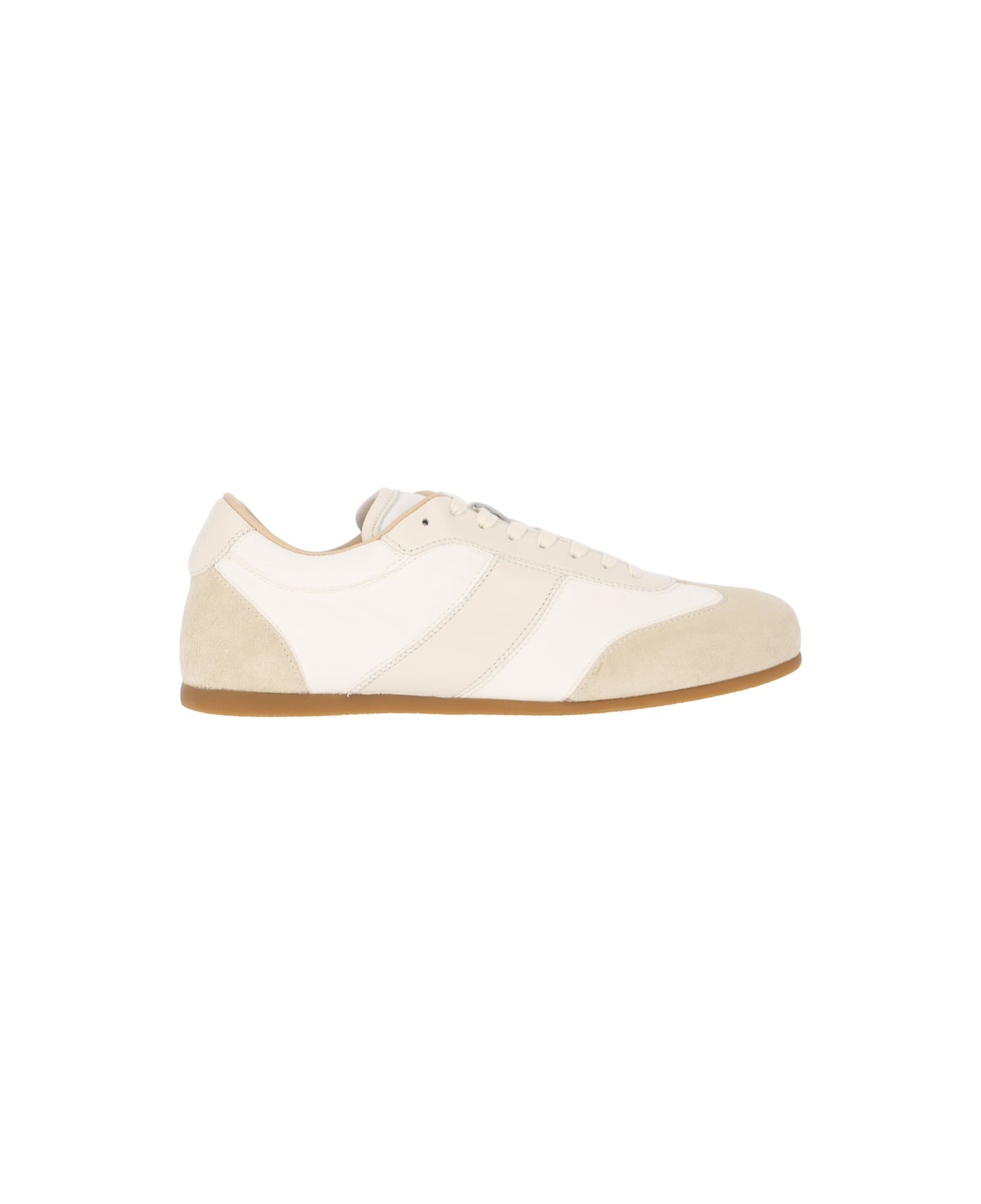 Sneakers "Soft Runner" Lemaire in white fabric, round toe, lace-up closure, contrasting suede details, rubber sole.